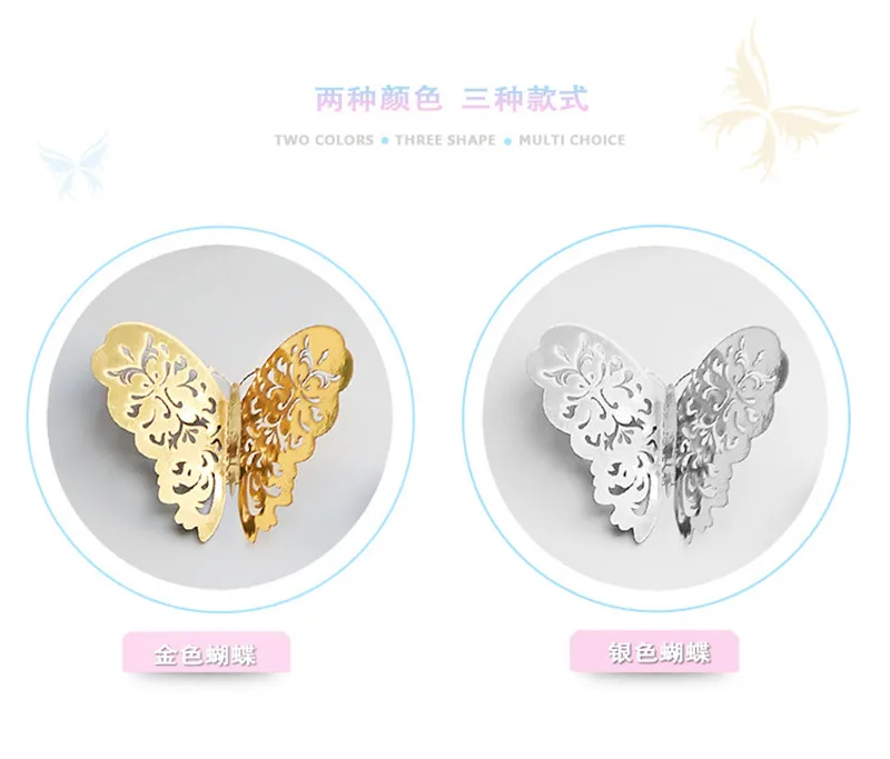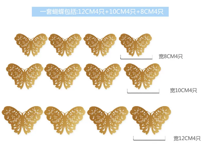12 шт.лот 3D металлик на ощупь полые бабочки наклейки на стену для ...