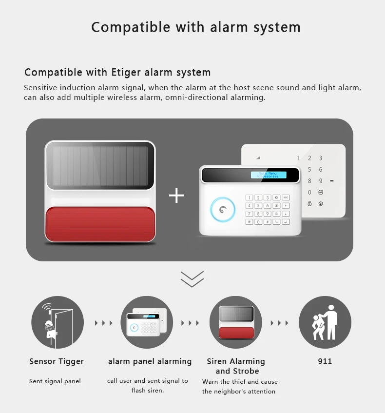 Etiger Беспроводной открытый ES-S8A Беспроводной Открытый Солнечный Строб Сирена для Аварийная Системы S4S3 G90B плюс