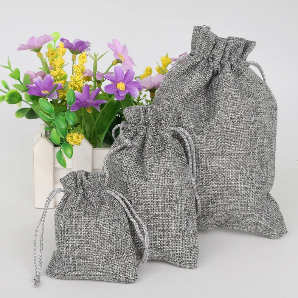 10 шт.лот джутовые мешочки из натурального мешковины, подарочные мешочки для конфет, Свадебный мешочек, сумка для упаковки ювелирных изделий на шнурке