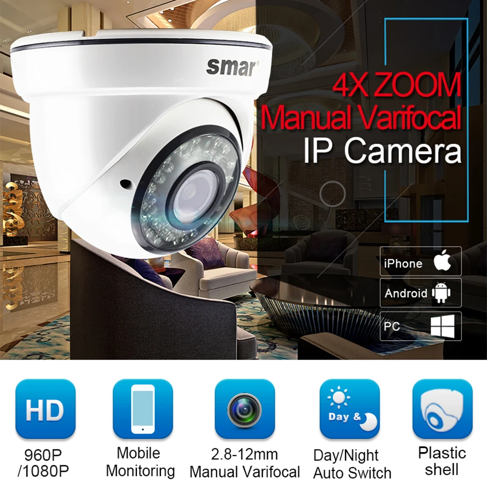 Smar 720P 960P 1080P HD купольная ip-камера с 4X зумом 2,8-12 мм ручной варифокальный объектив 36 IR Leds высококачественный пластиковый чехол