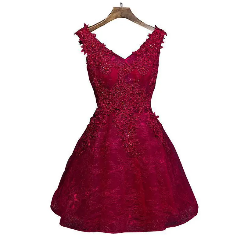 Цвет красного вина модные, пикантные вечерние платья 2017 короткие Новый V Средства ухода за кожей Шеи Банкетный небольшой вечернее платье Выходные туфли на выпускной бал платье халат De Soiree