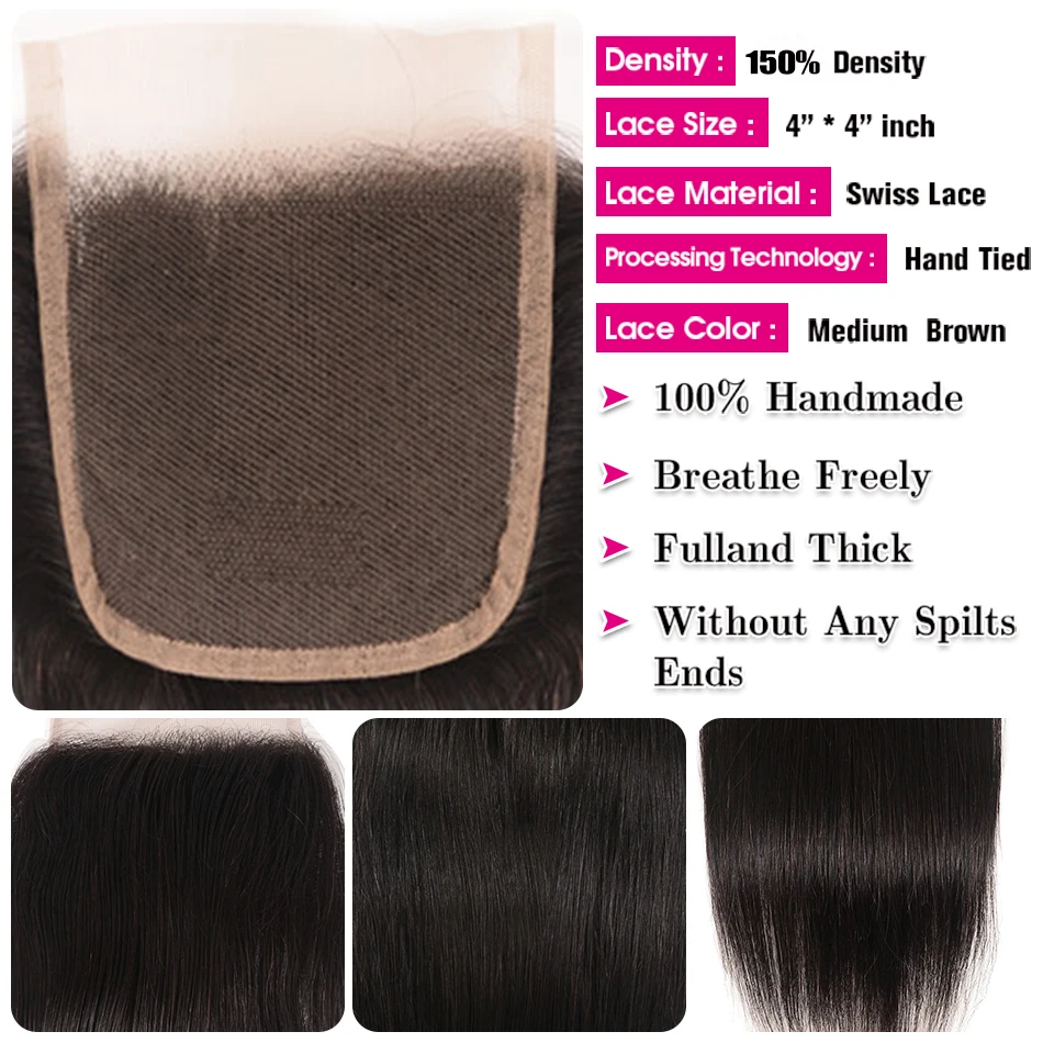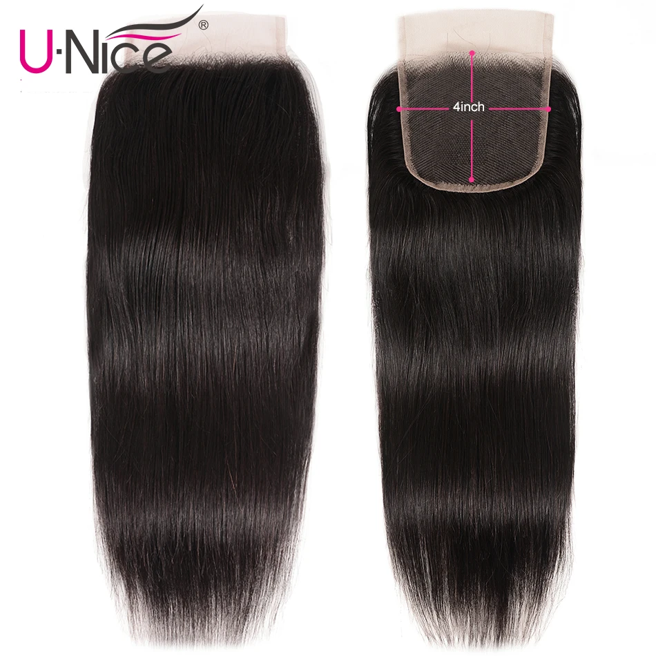 UNice волосы Icenu серия Remy волосы перуанские прямые волосы на шнуровке средняя часть Remy человеческие волосы на Закрытие 4 "x 4" швейцарское кружево 1 шт