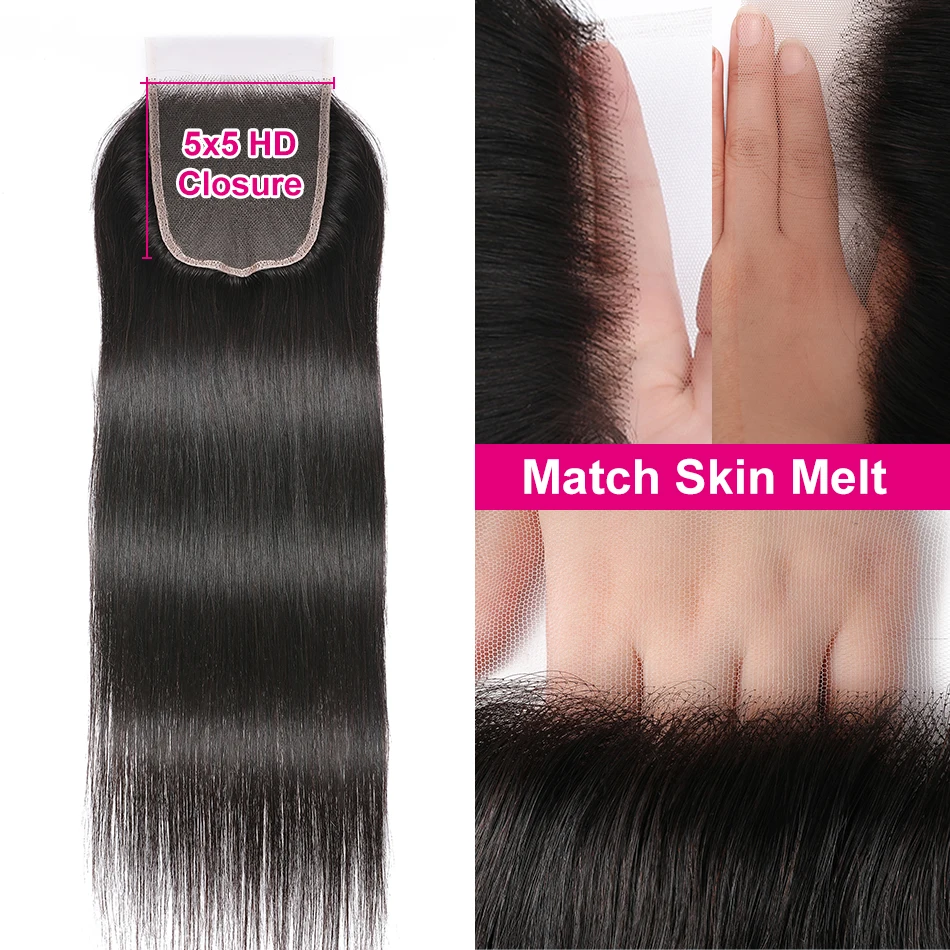 Волосы UNice перуанские прямые волосы на шнуровке свободная и средняя часть 4x4 Remy человеческие волосы на застежке 5x5 HD кружева закрытие 1 шт
