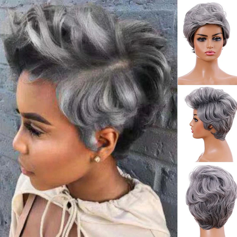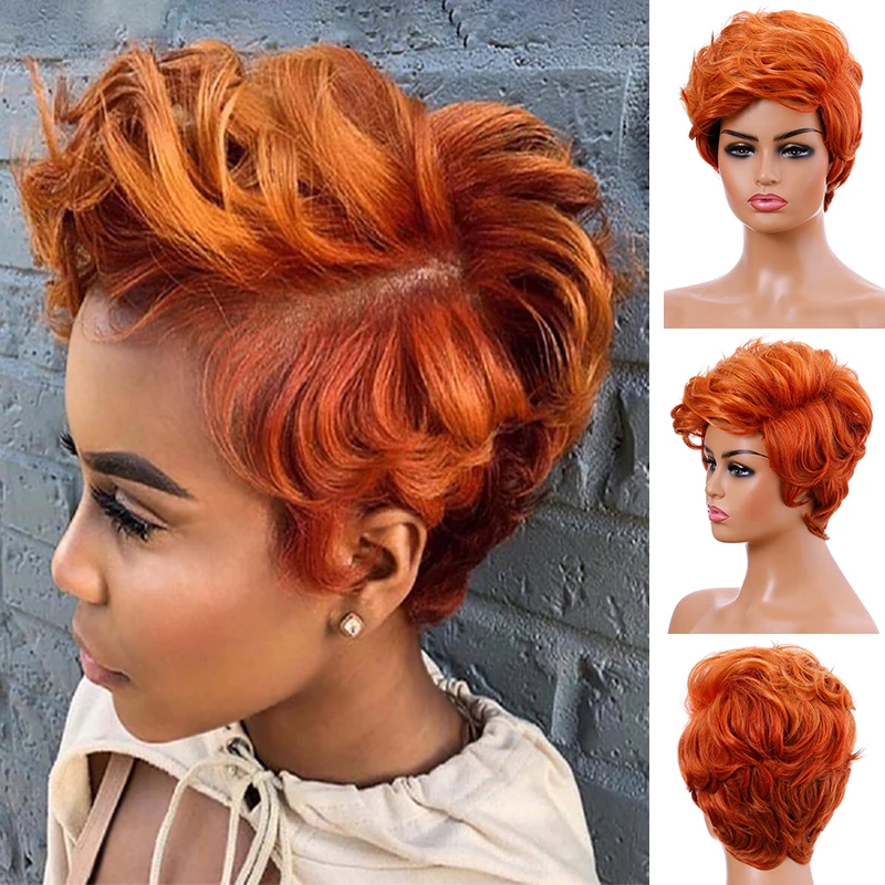 Парики афро для женщин, стильные короткие Многослойные кудрявые волосы, для чёрных женщин, оранжевого, серого цветов