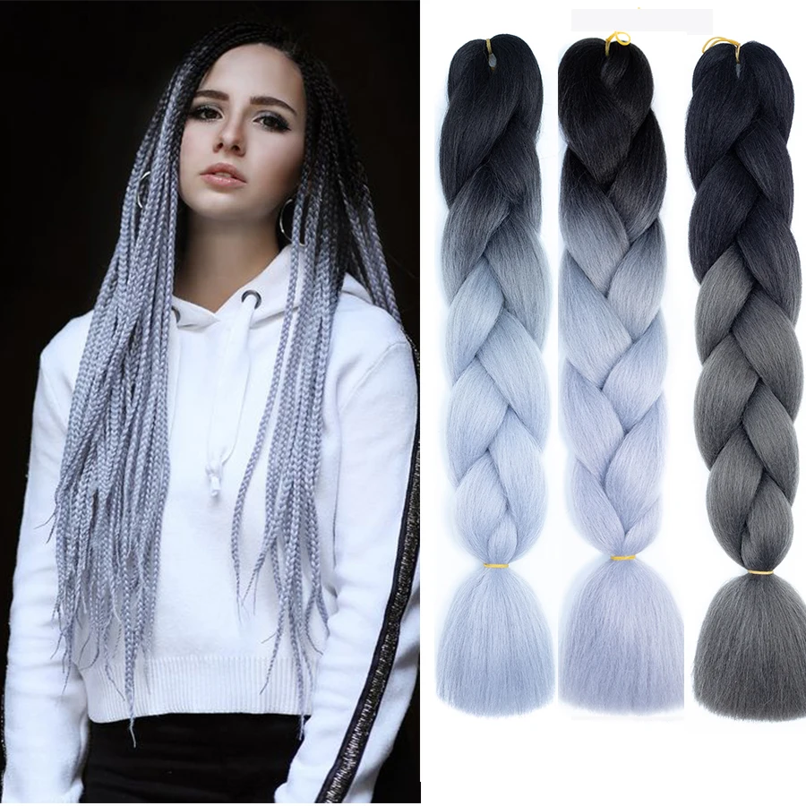 24 дюйма, Джамбо Синтетические Искусственные волосы с эффектом омбре, предварительно растянутые волосы для женщин и детей