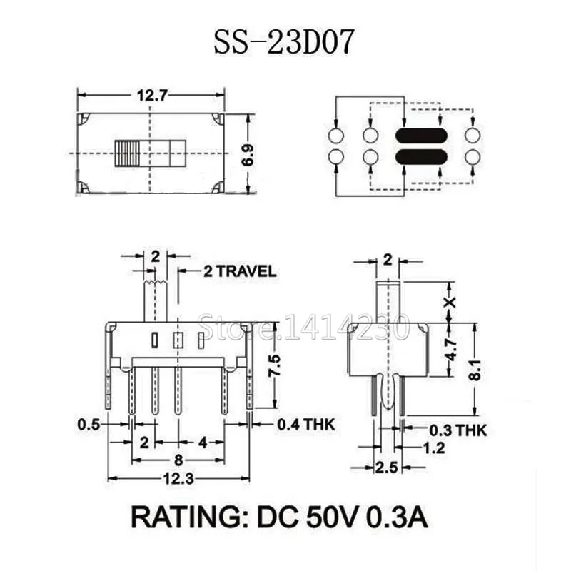 10 шт. SS23D07 8 контактов 3 положения 2P3T тумблер двойной вертикальный скользящий переключатель длина ручки 5 мм кронштейн