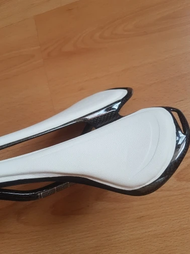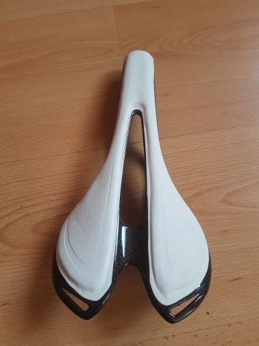 жаль, что не успел сфотографировать, уехал из дома. сделано некачественно. да, легкое седло, правильной формы, на этом плюсы заканчиваются. на креплениях нет цифровых обозначений. само седло криво обрезано, неровные края. мягкий элемент приклеен криво. не советую