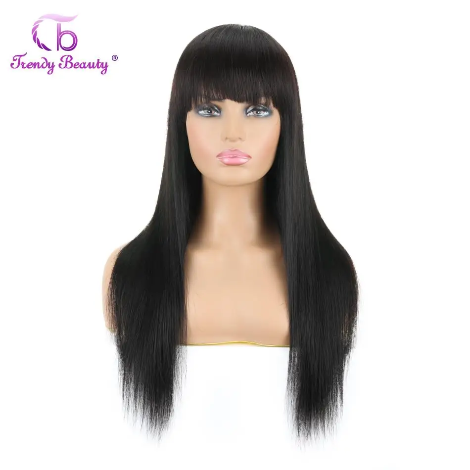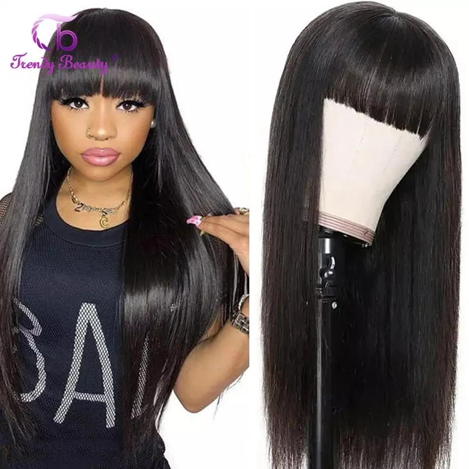 Перуанские прямые человеческие волосы, парики с челкой, полный машинный парик, человеческие волосы Remy, парики, натуральный цвет, модные красивые волосы