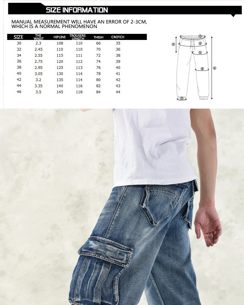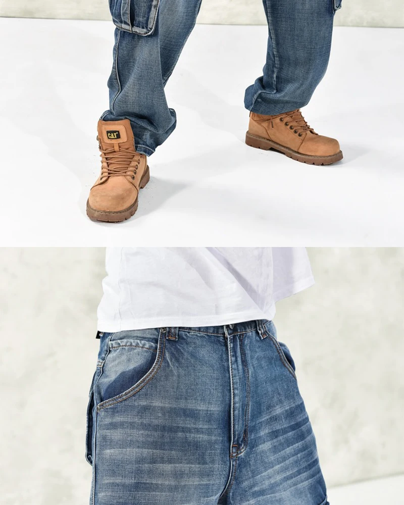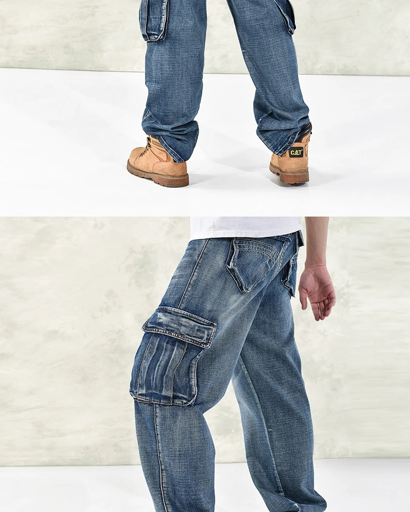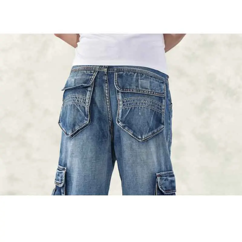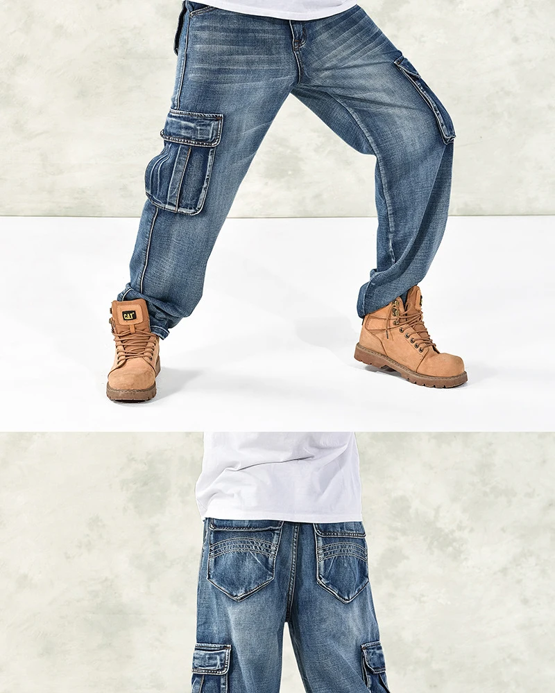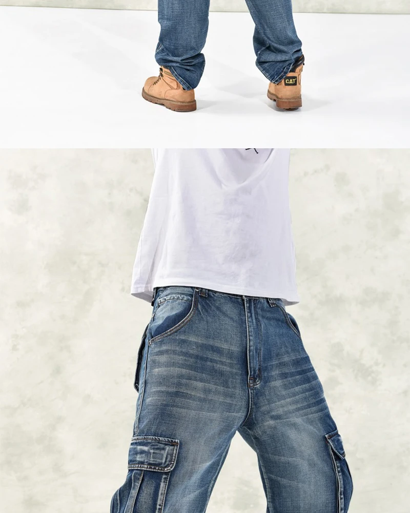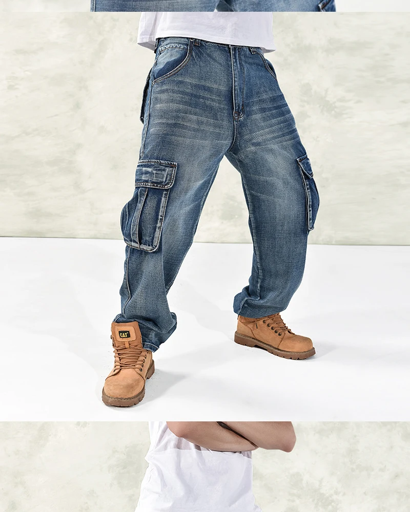Джинсы большого размера, Модные свободные джинсы с большими карманами в стиле хип-хоп, повседневные большие мужские джинсы, широкие брюки, размер 30-46