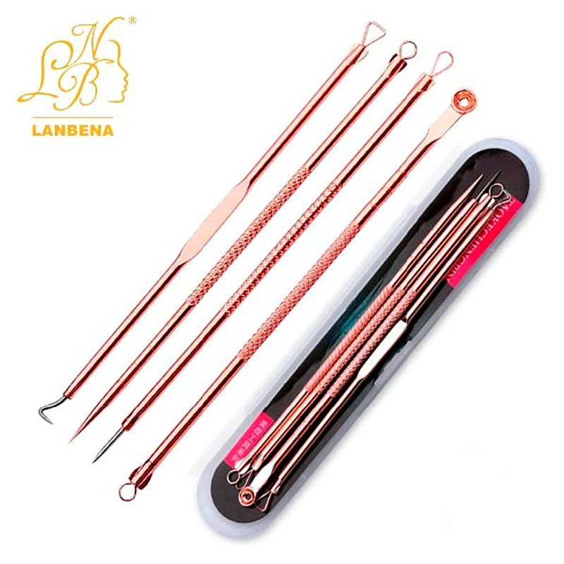 4 вещи. Игла для удаления черных точек и прыщей, розовое золото
