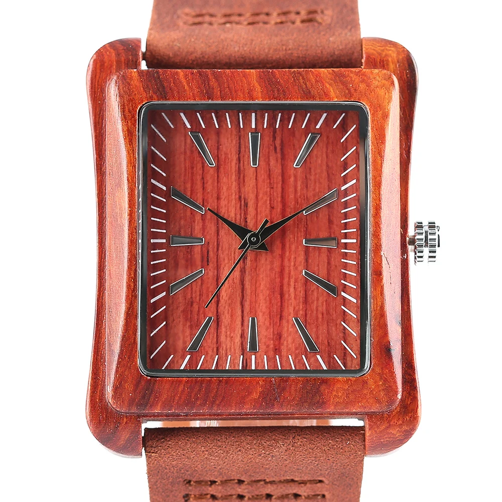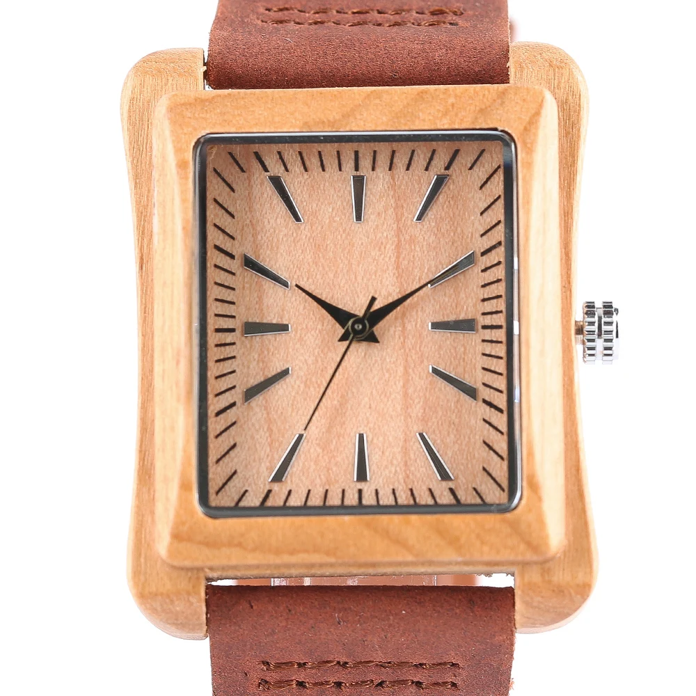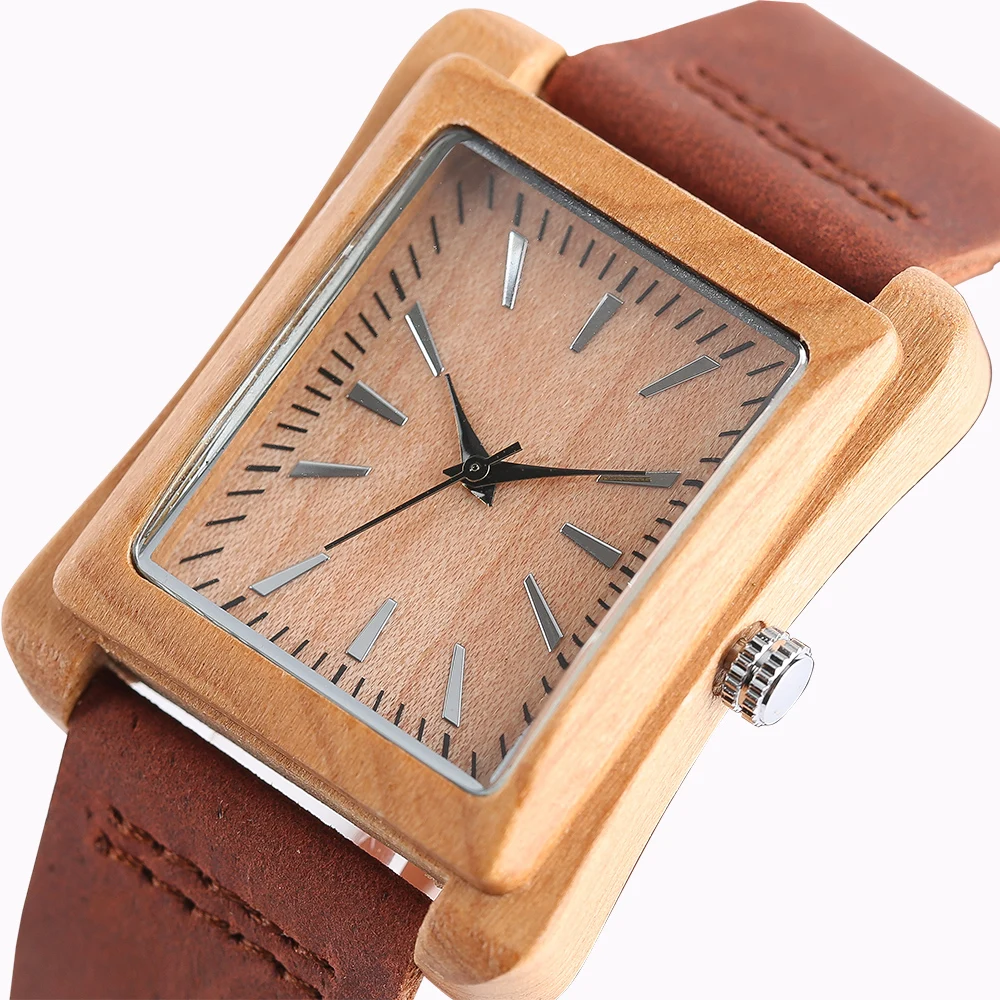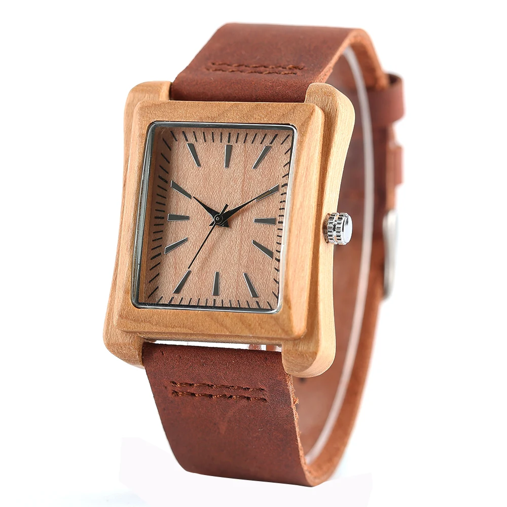Уникальные спортивные мужские часы 2017 прямоугольной формы, мужской, женский деревянный браслет, минималистичные наручные часы из натурального бамбука, кожаные часы