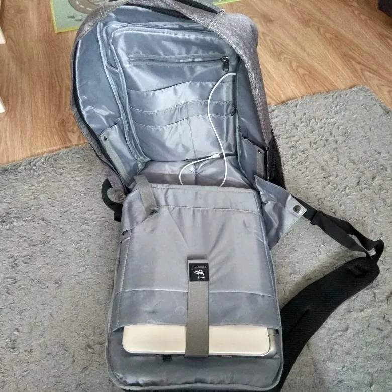 отличный рюкзак. есть защита для ноутбука. 15,6 залетает в карман со свистом, возможно поместится и более крупный. раскрывается на 90°, внутри множество карманов. снаружи молния скрыта от глаз, в каком месте находятся бегунки никто не увидит. лямки можно настроить не снимая рюкзака.