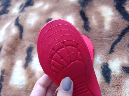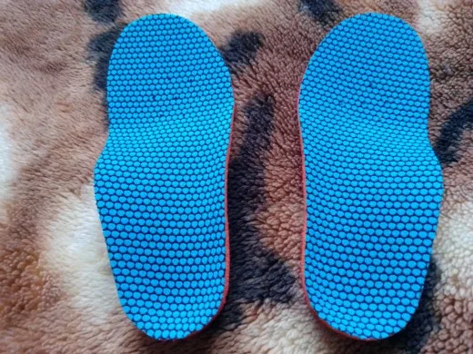 Ну что скажу, в ботинок лезут с трудом. Пяточка прочная, в обуви плюс к платформе ещё 0,5 см, ребёнку немного не комфортно. Вечером походили, вроде привык. Посмотрим сегодня как будет. В целом приятная, носик гнется, пятка хоть и прочная, но тоже по жёсткости комфортна