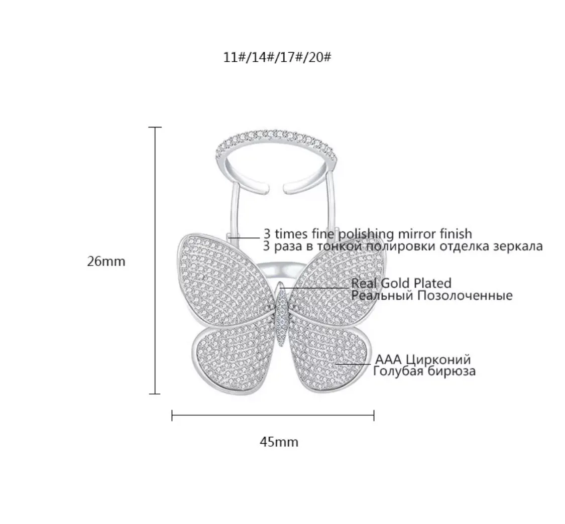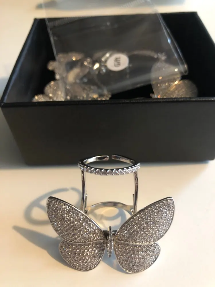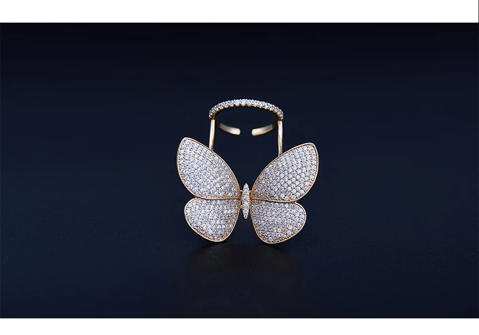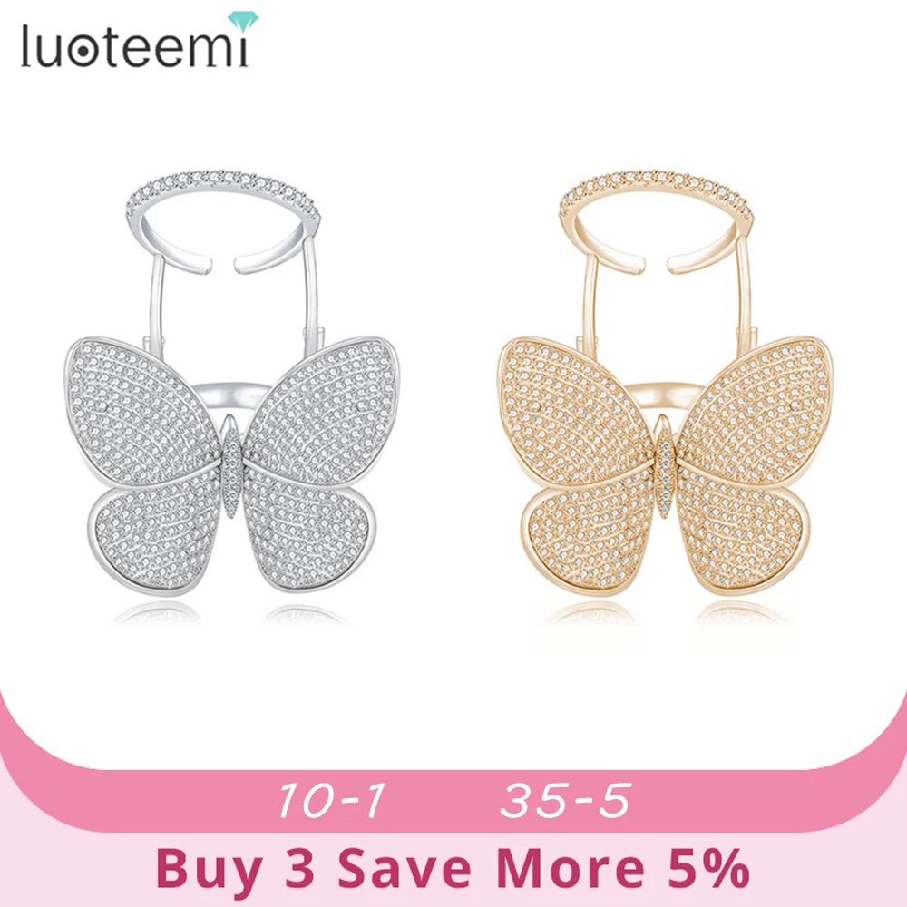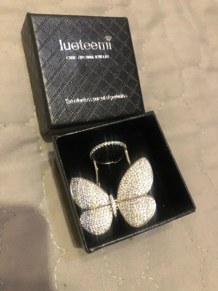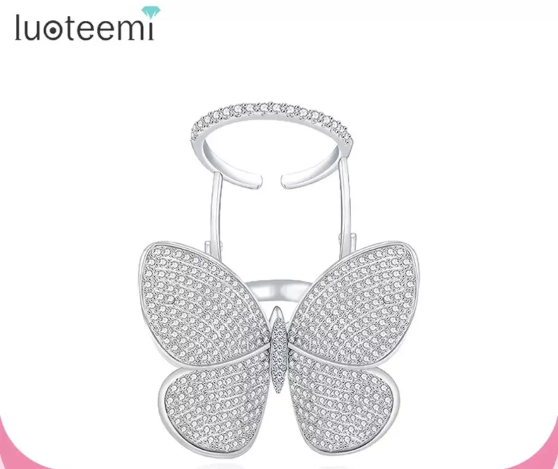 Кольцо регулируемое LUOTEEMI, с подвижным фианитом, в форме бабочки
