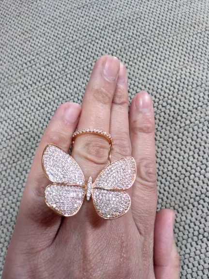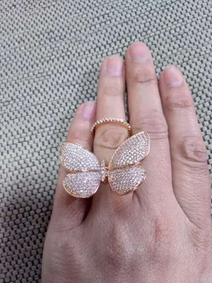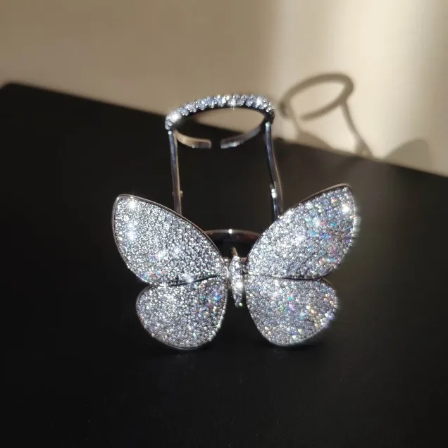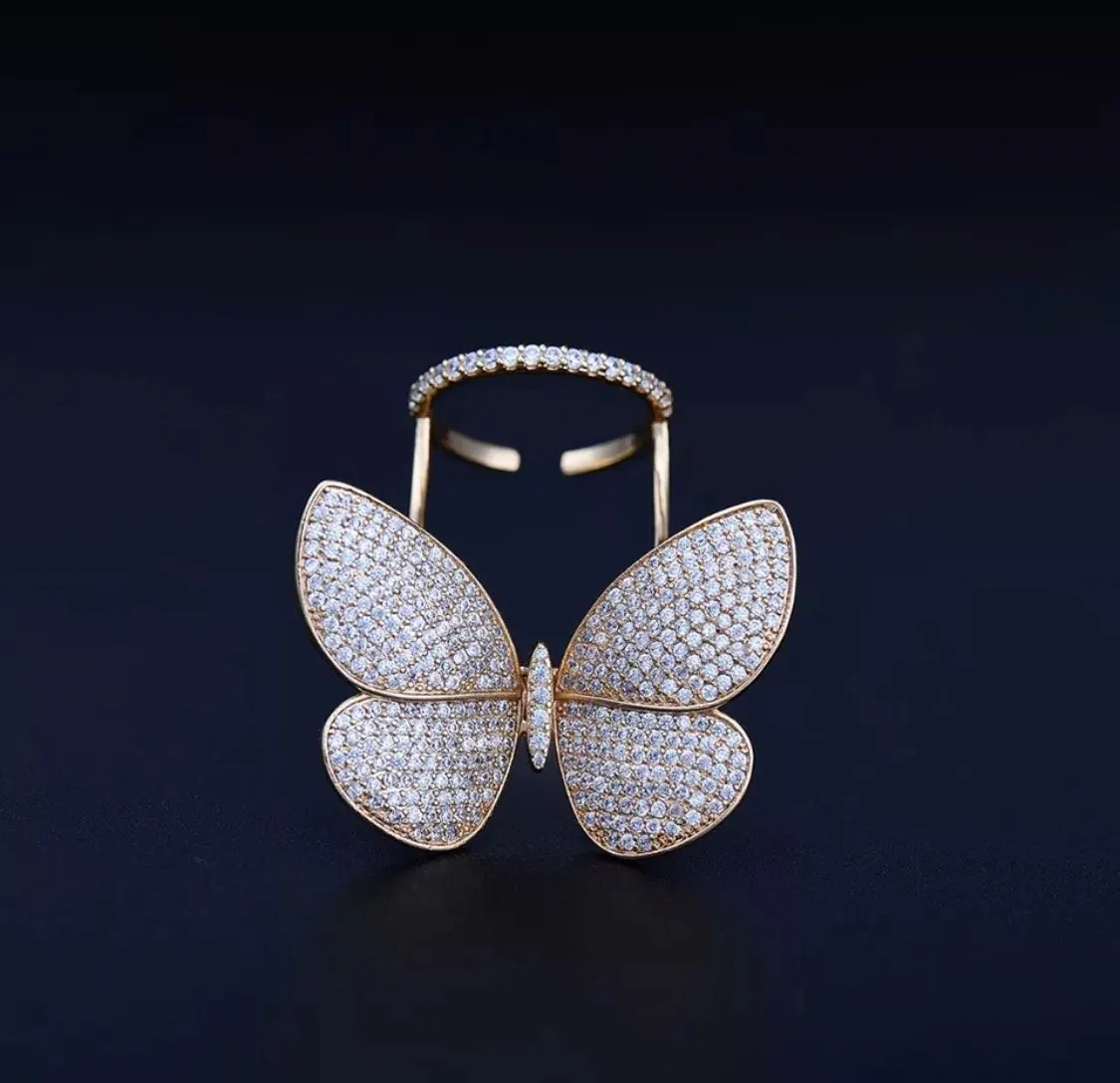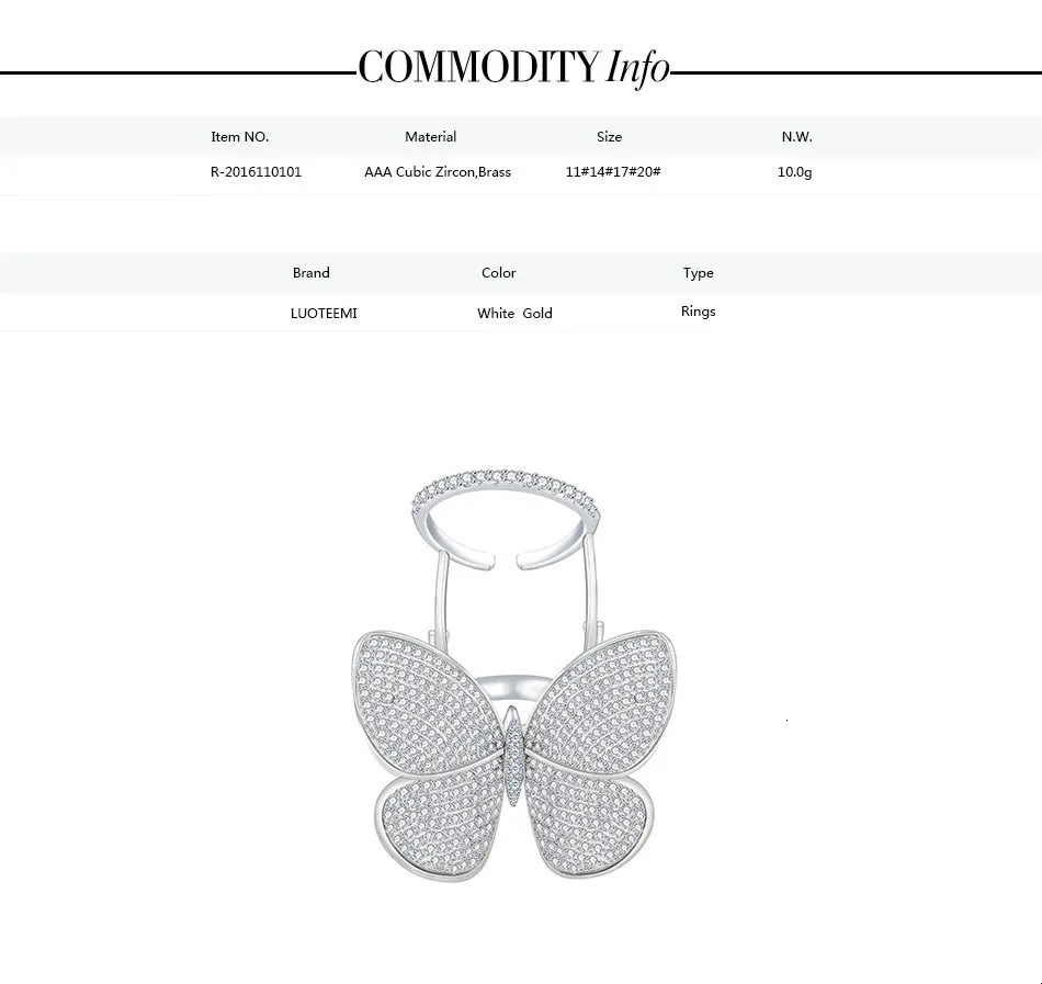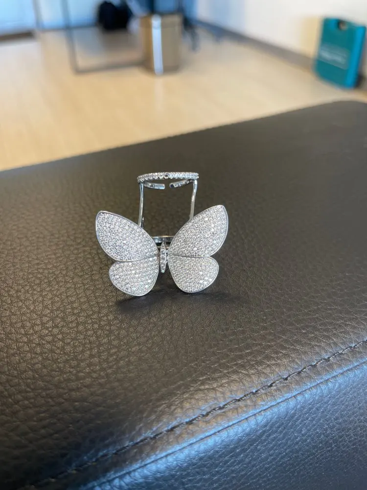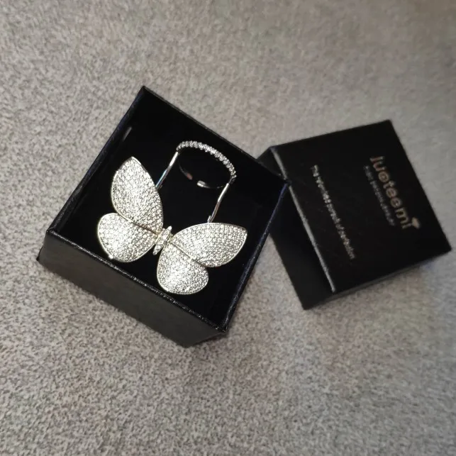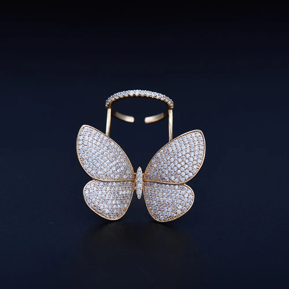 Кольцо регулируемое LUOTEEMI, с подвижным фианитом, в форме бабочки