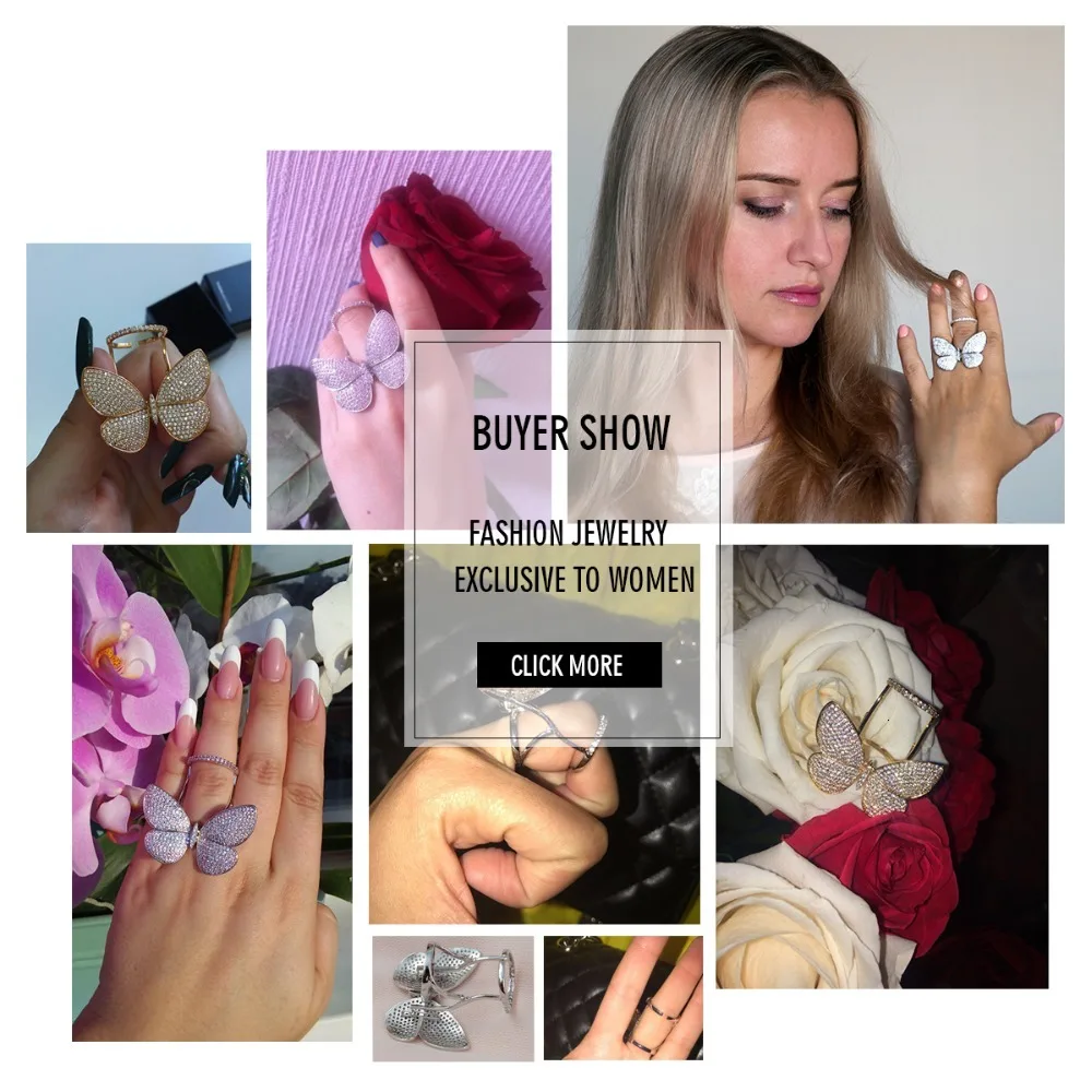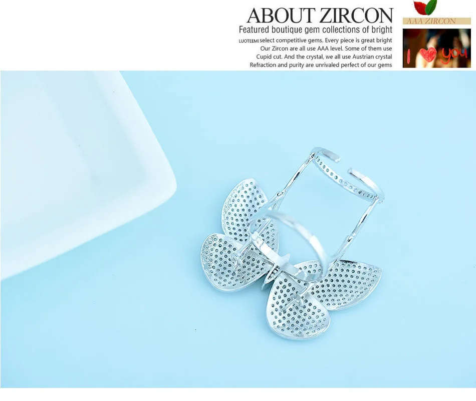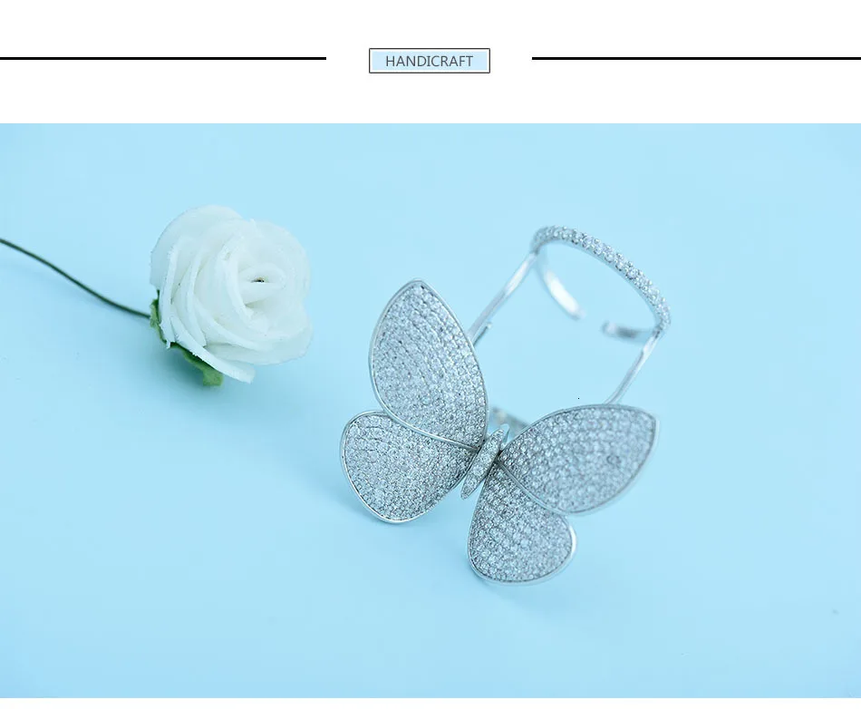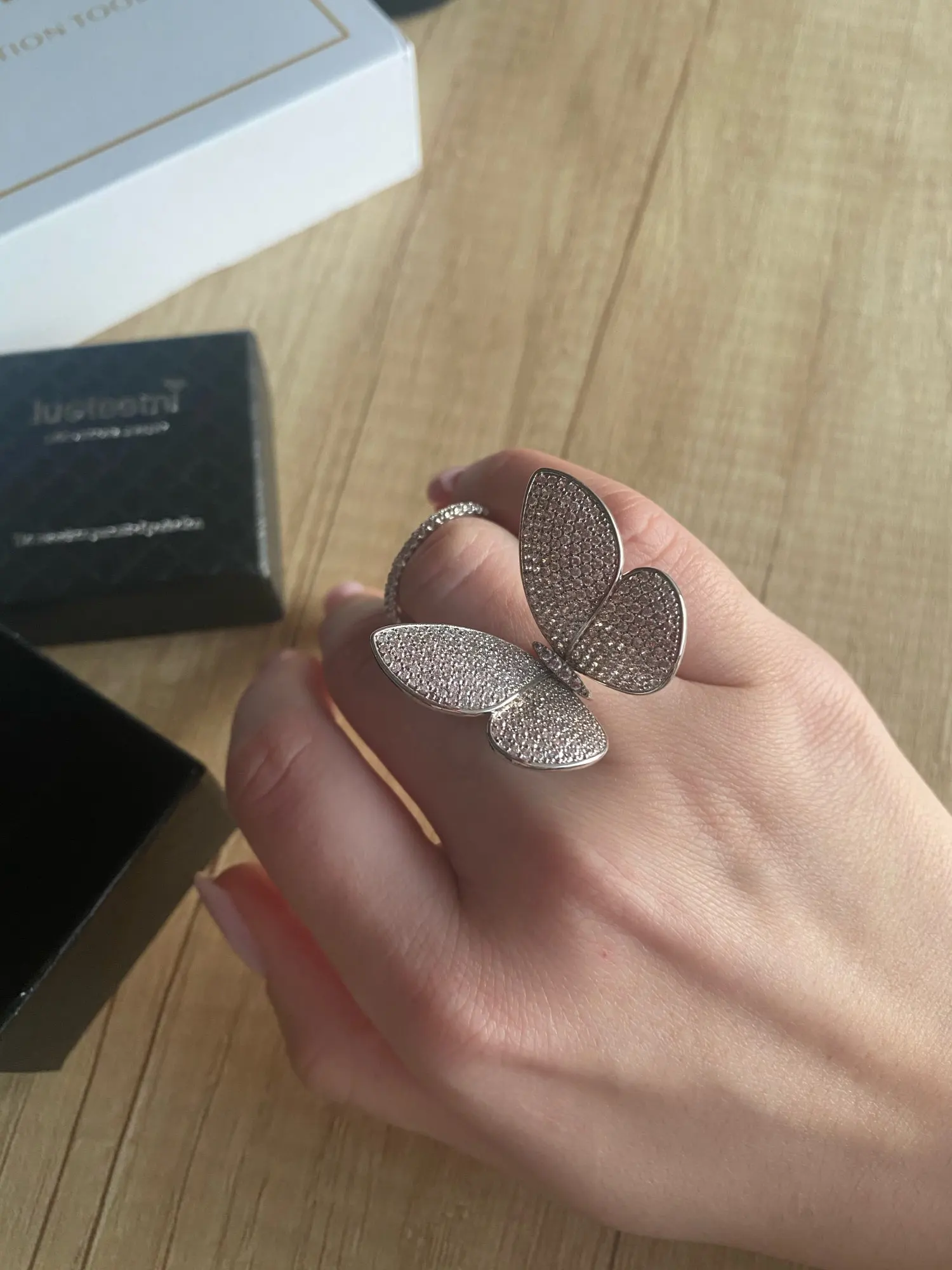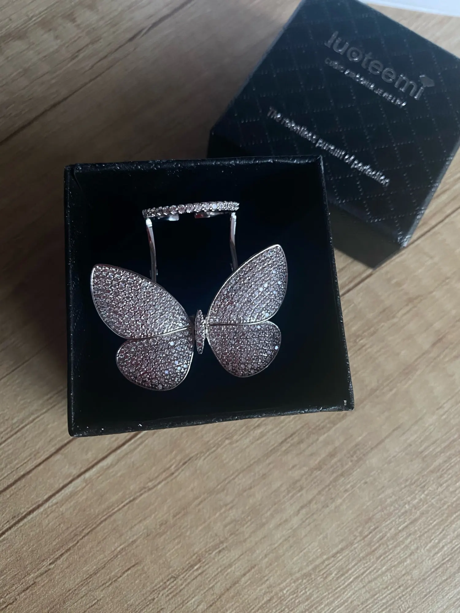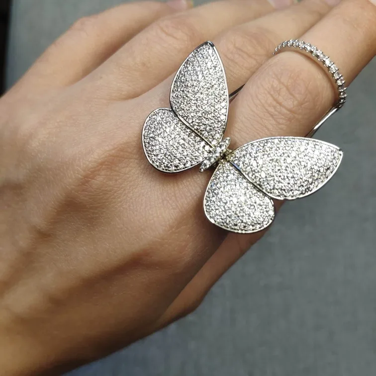 Кольцо регулируемое LUOTEEMI, с подвижным фианитом, в форме бабочки