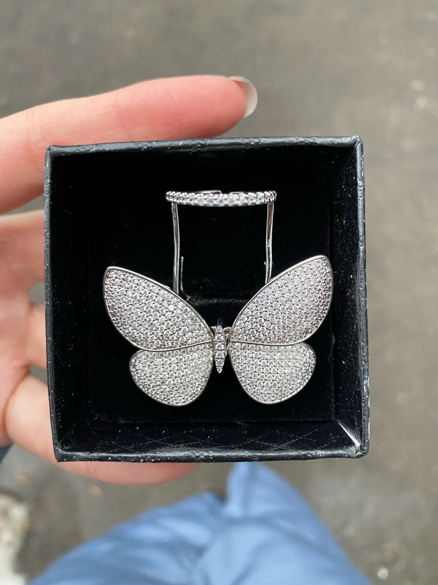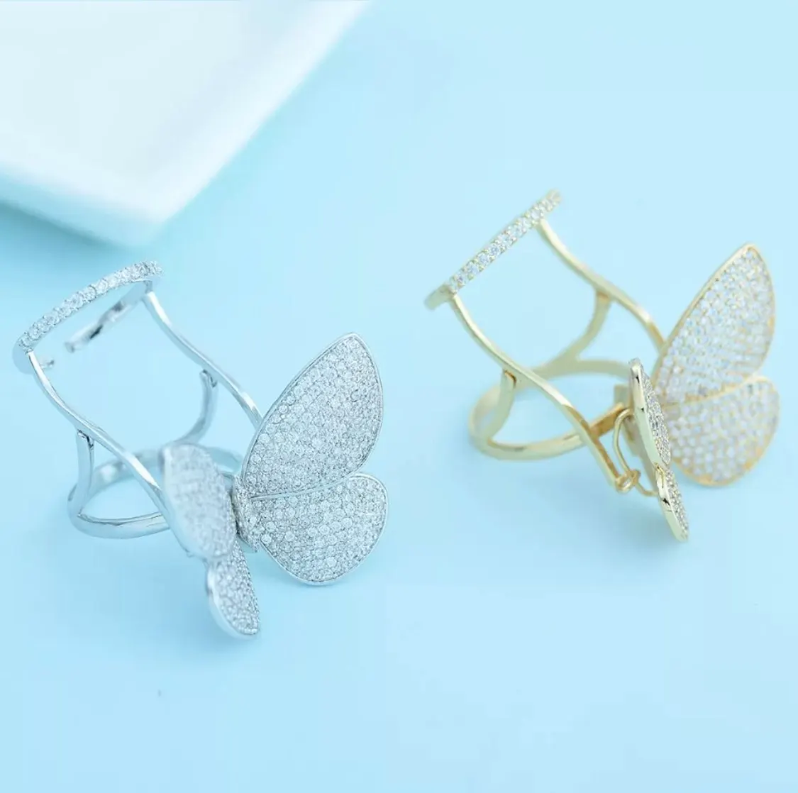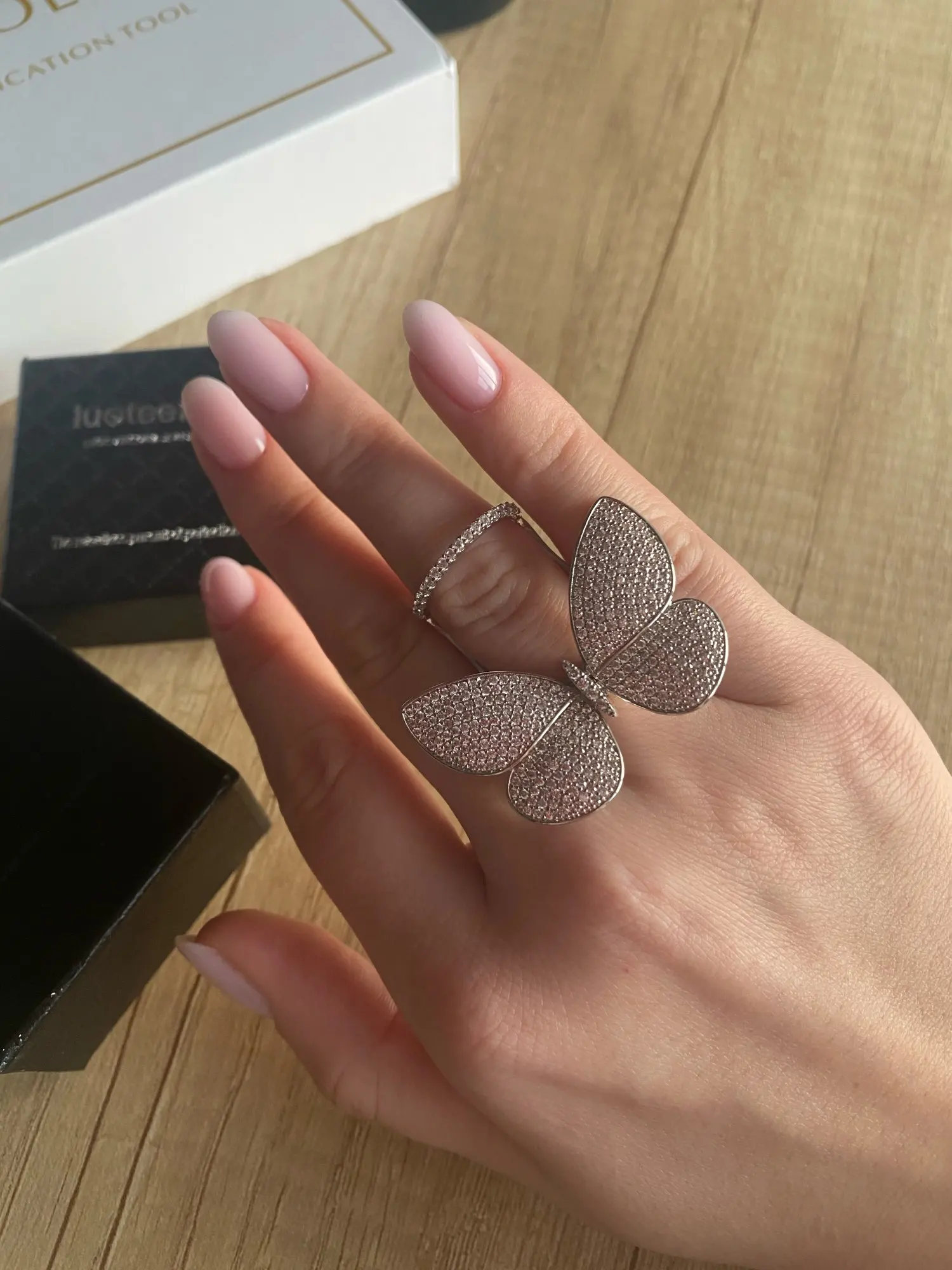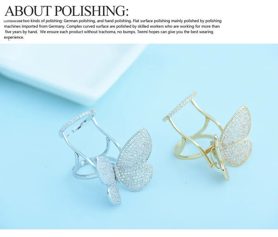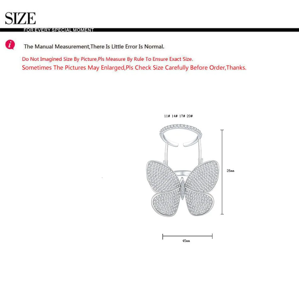 Кольцо регулируемое LUOTEEMI, с подвижным фианитом, в форме бабочки