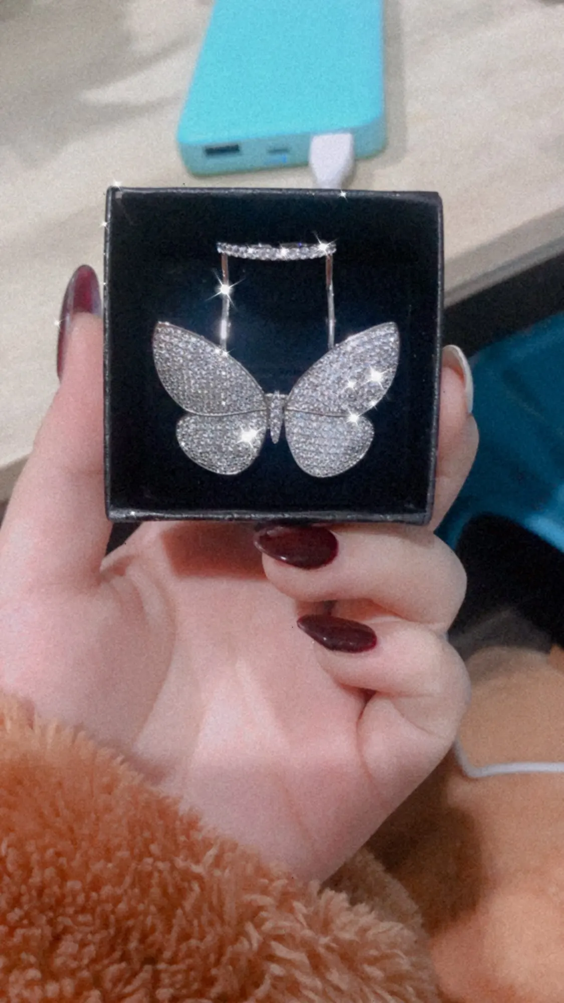 Товар пришел за 2 недели, золотистое покрытие однородное, камушки все на месте, механизм "взмаха" крыльев работает хорошо. Дочка-подросток в восторге.