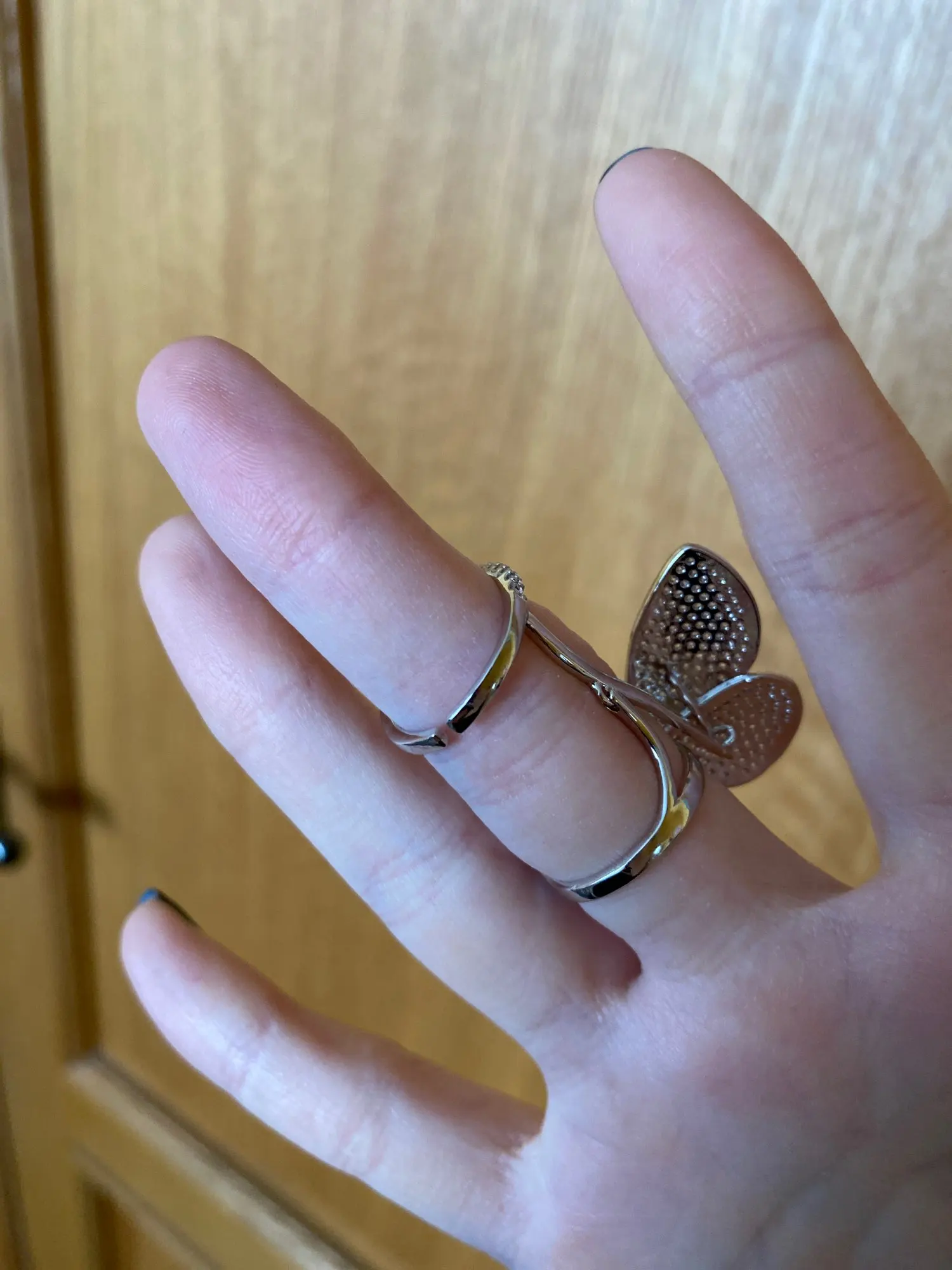 Нормально, но это не Размер 8. Возможно, размер 5 или 6, но Металл вырезан, чтобы сделать его «изменяемым», но когда я растягиваю его, чтобы сделать его больше, крылья не работают. Я действительно хотел продать много таких, я был так взволнован. Но я не могу это продать, если у кого-то маленькие пальцы.