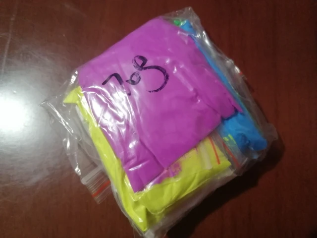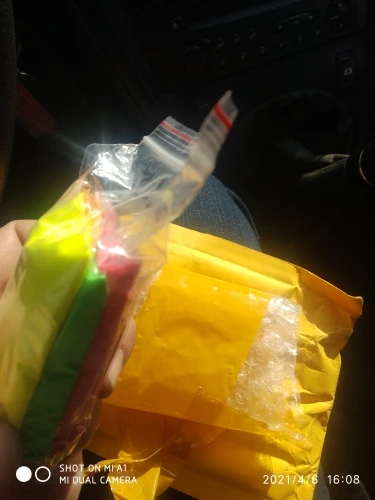 Ехали больше 1,5 месяца,кинули в ящик.Синего было прям много и фиолетового,а желтого мало положили(Но давольно много в пакете,буду брать еще,ничем не пахнет,были упакованы так,что еле расклеила,так что молодцы,но снова же...я думала блин уже и недоедут(((