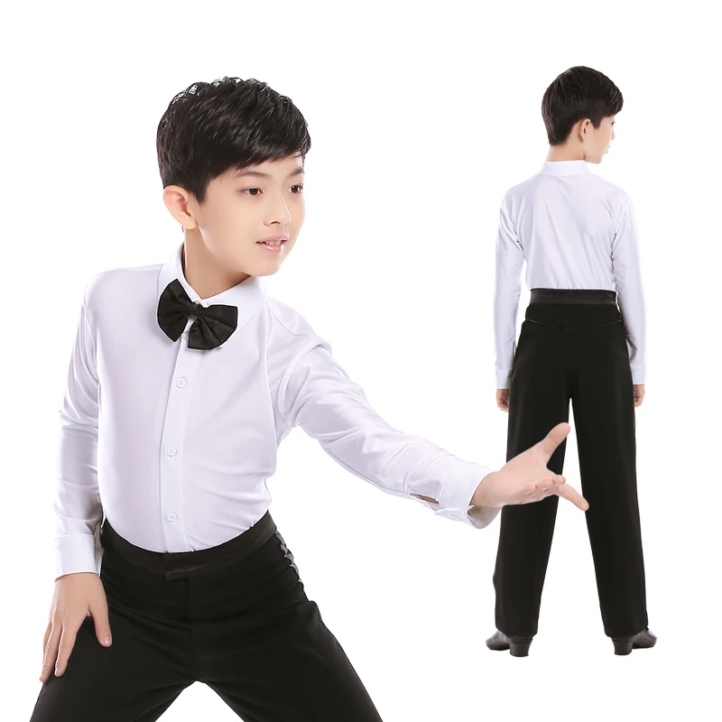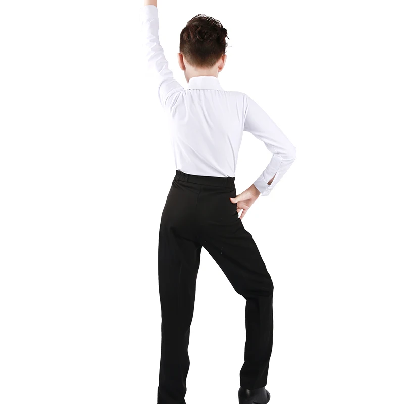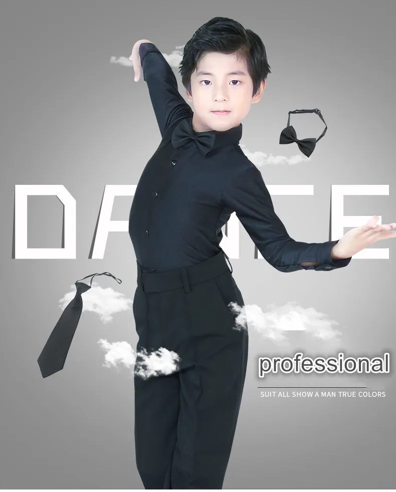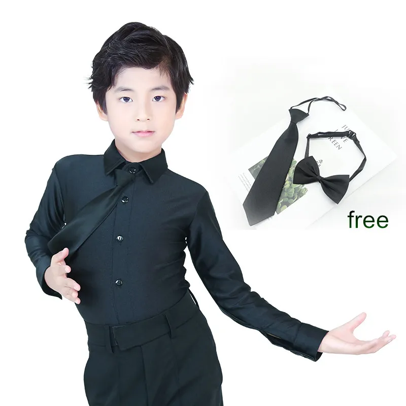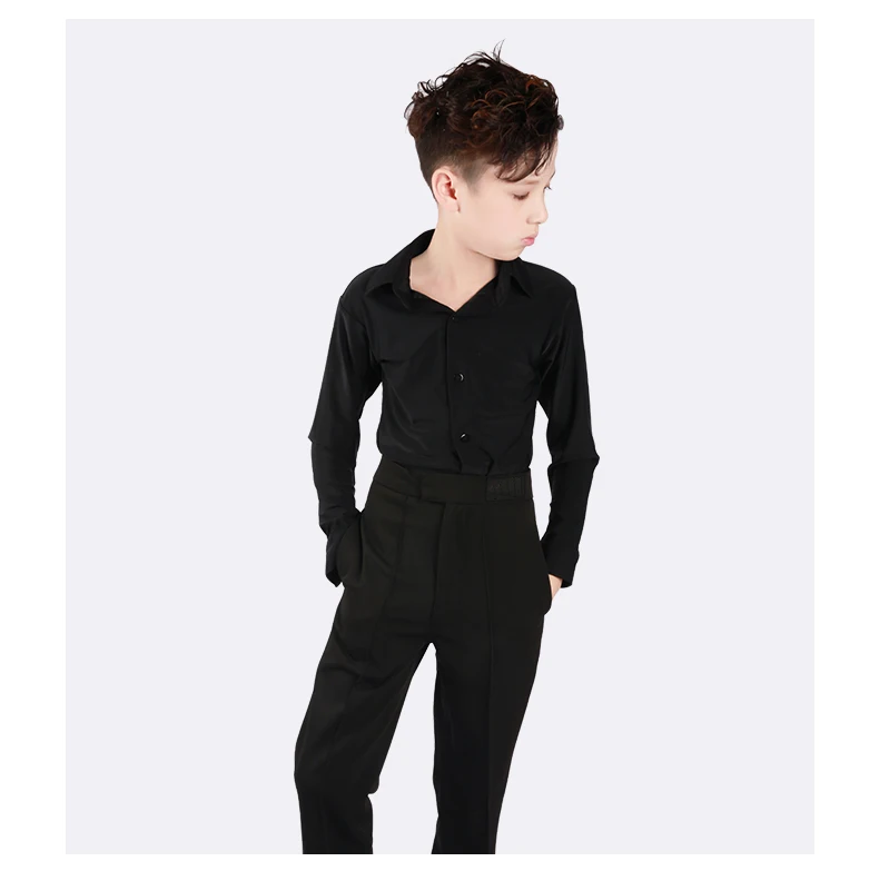 Профессиональная рубашка с воротником-стойкой для латинских танцев черные тонкие топы с длинными рукавами для мальчиков и взрослых Одежда для танцев для мальчиков