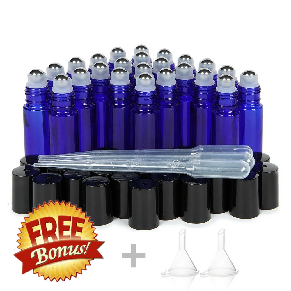 Флаконы стеклянные пустые кобальтовые с шариком из нержавеющей стали, 24 шт., 10 мл, для эфирных масел, блеска для губ, духов