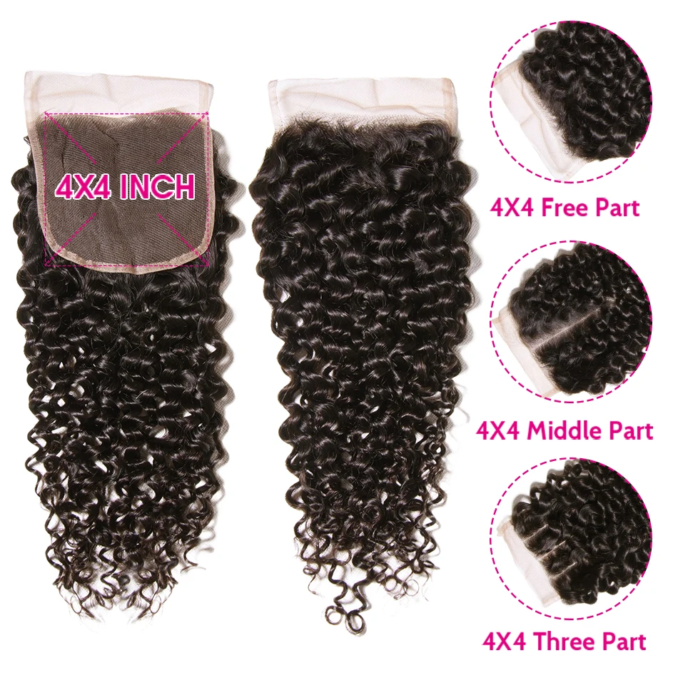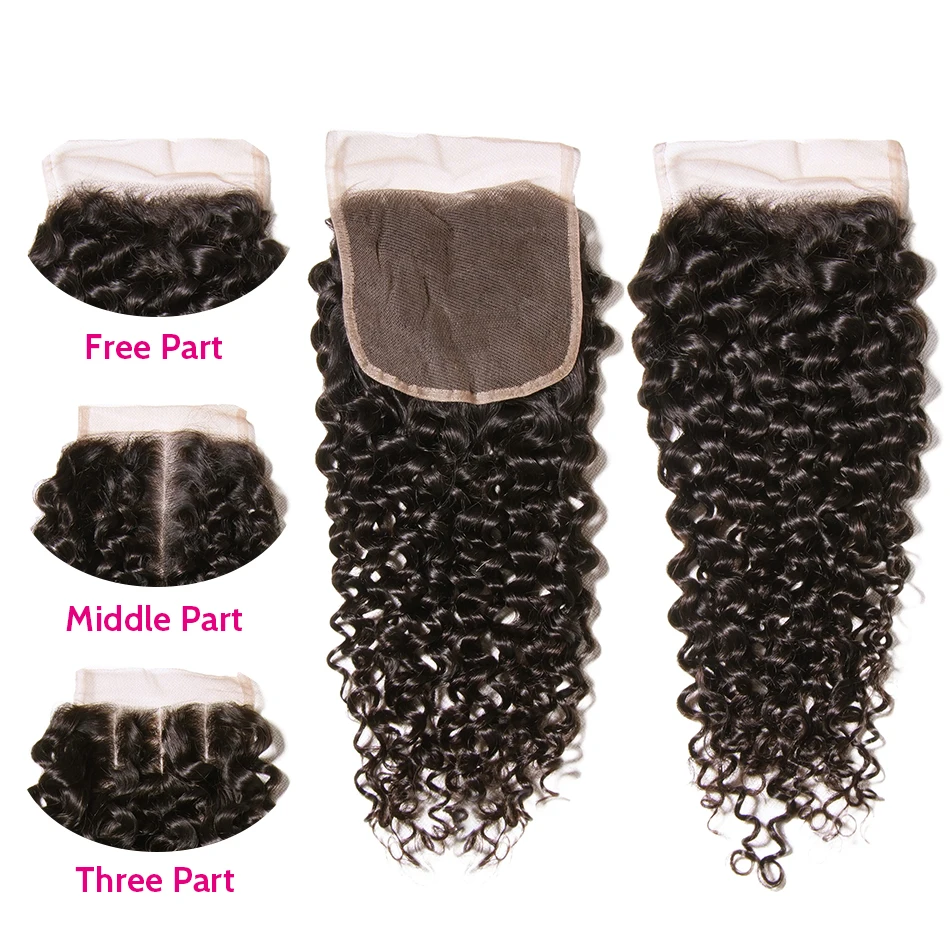 Волосы UNICE перуанские кудрявые волосы закрытие три части 150% плотность человеческие волосы Кружева Закрытие естественный цвет Remy волосы 10-20 дюймов