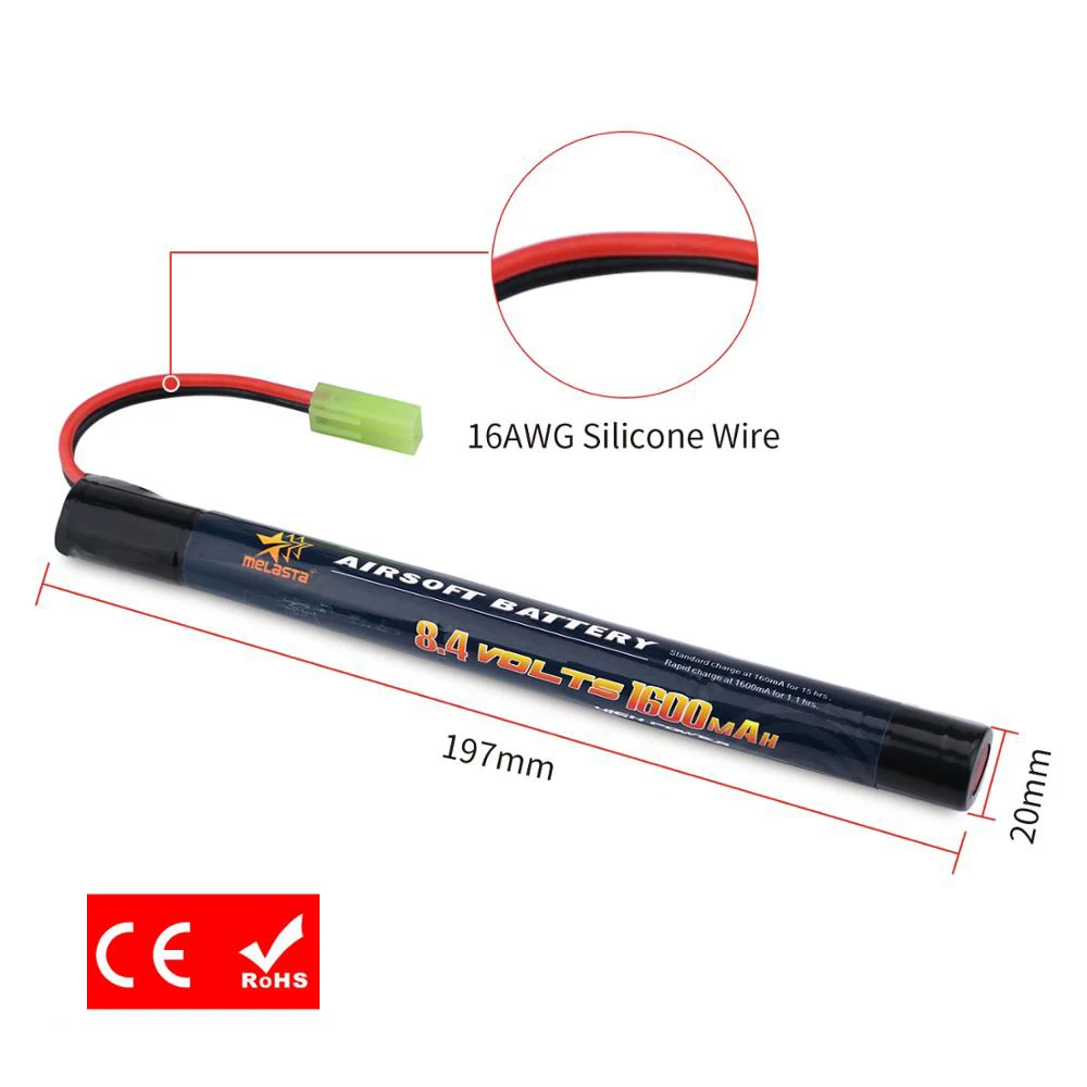Никель-металлогидридный аккумулятор с разъемом Mini Tamiya для страйкбольных пистолетов Cyma AK47 AEG'S rosman Pulse R76, 2 шт.упаковка, 8,4 в, 1600 мАч, 23 А