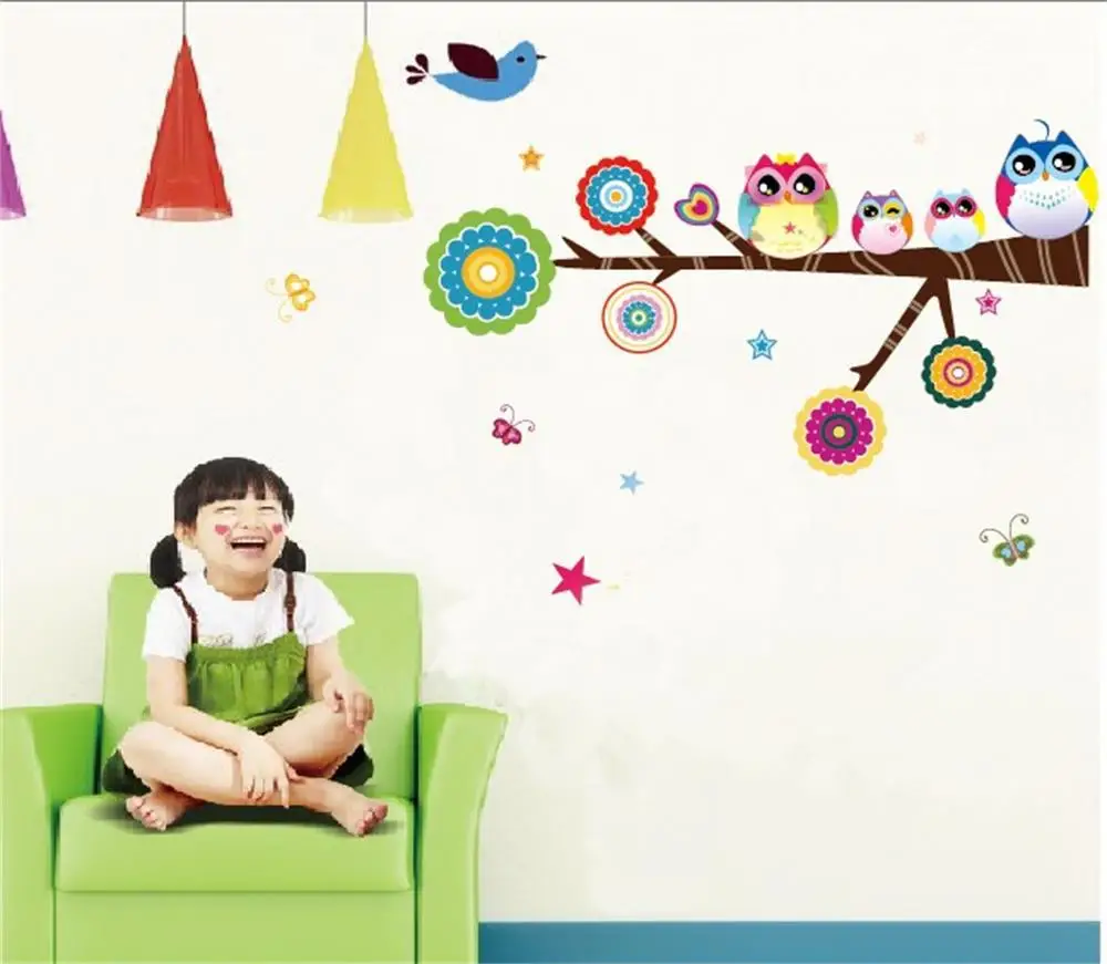 Наклейки на стену для детской комнаты, декоративные наклейки, ПВХ, Новое поступление, ZY1020, декор "Совы на дереве"