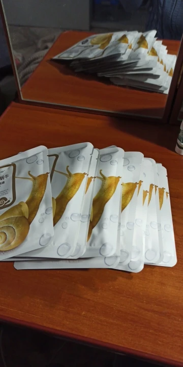 Маска на основе слизи улитки, заказала 11штук по 5, получила 55штук, продавец упаковал в прочный целофановый пакет,шла посылка в Израиль полтора месяца, всё дошло в отличном состоянии, с продавцом не общалась, небыло надобности,ещё не пользовалась, результаты напишу в дополнить отзывы, спасибо большое продавцу, покупкой очень довольная, рекомендую продавца и его магазин.