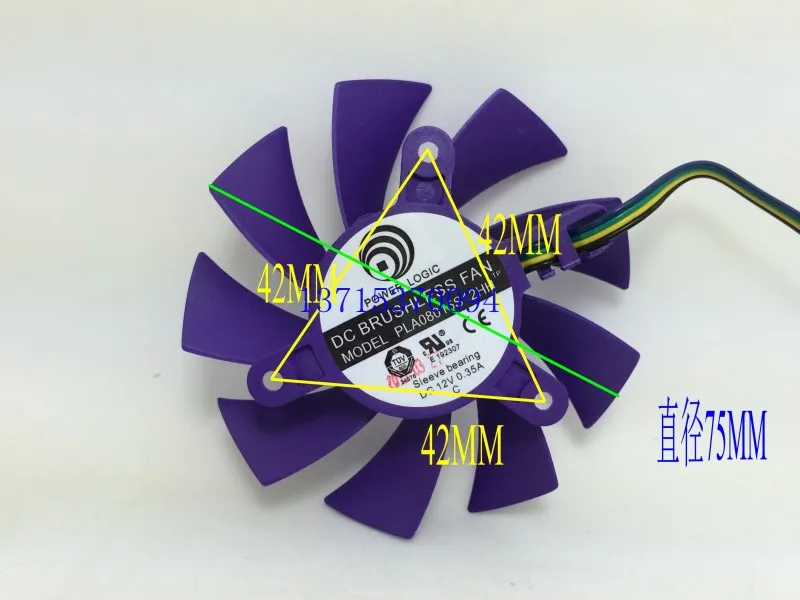 Оригинальный вентилятор Охлаждения видеокарты диаметром 75 мм Шаг 42 мм PLA08015S12HH 12 В 0,35 а 128015-SH2 EP 0,40 А icon star icon star icon star icon star icon star