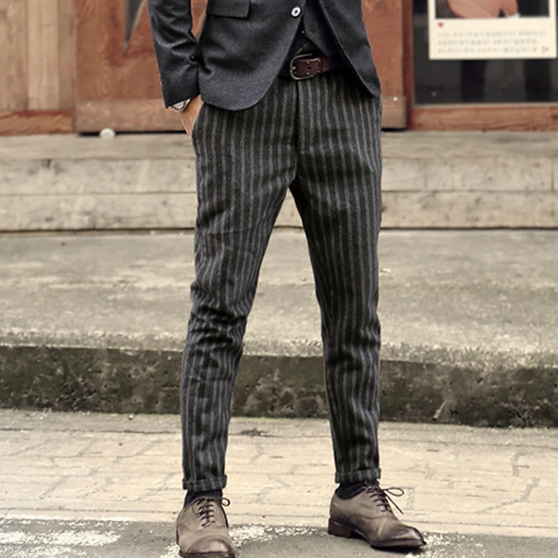 Мужские брюки в Вертикальную Полоску, длинные зауженные брюки в английском стиле, 2017