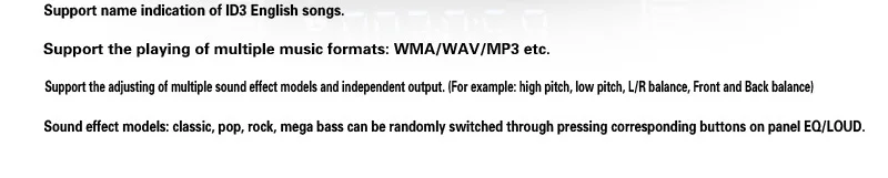 FM: поддерживает трехдиапазонный FM1-FM2-FM3 магазина радио и может установить 18 радиостанций.