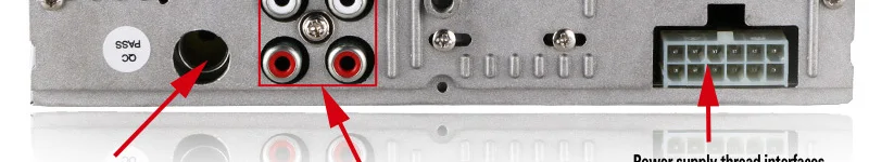 Переднее входное отверстие AUX аудио и задний Терминал L / R аудио RCA выходное отверстие.