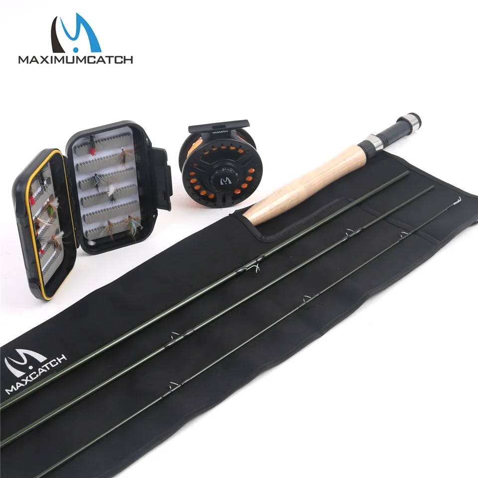 Набор из 4 удочек Maximumcatch 5WT из углеродного волокна толщиной 9 футов, с катушкой на 56wt и линиями, с коробкой и мушками, комбинированное удилище для ловли нахлыстом