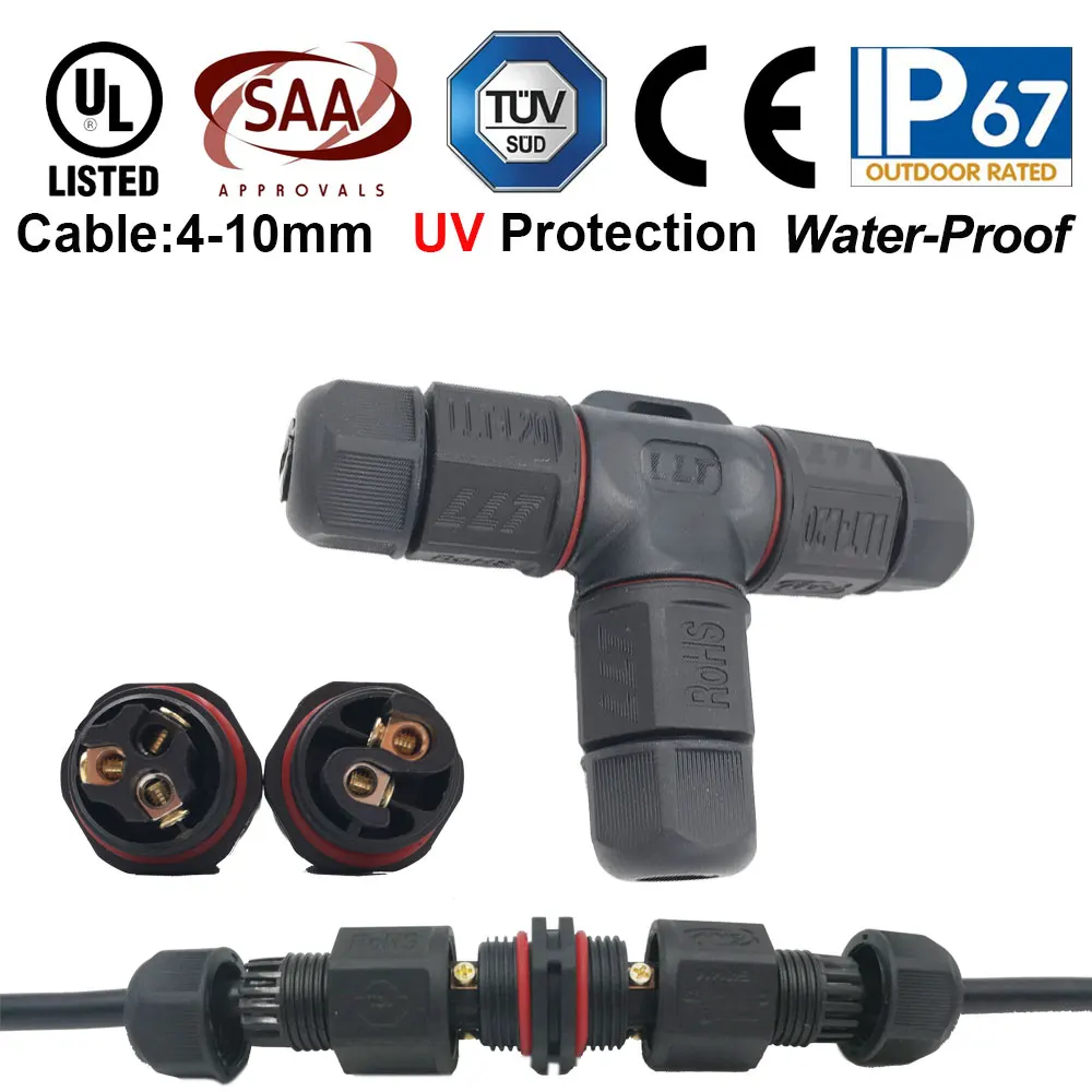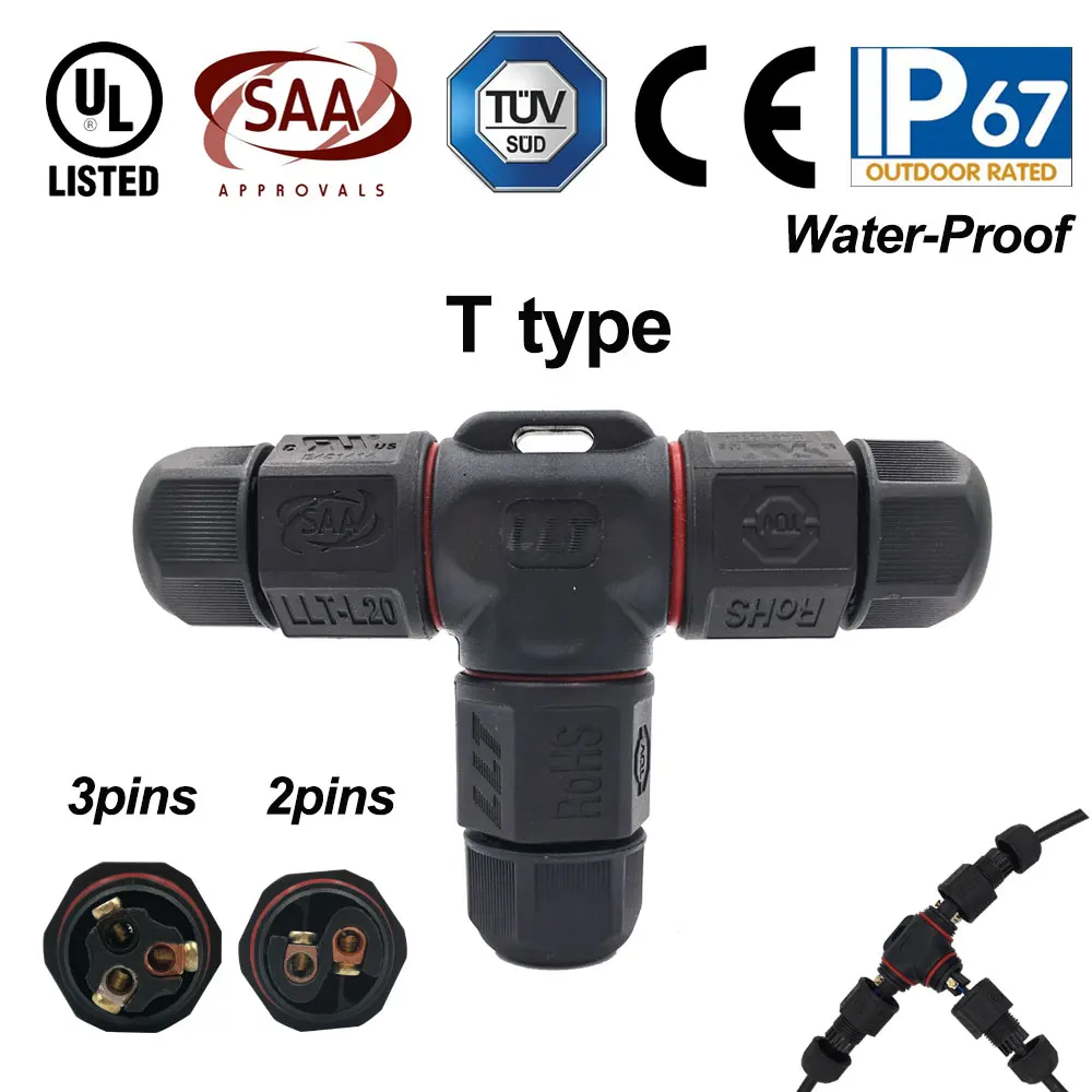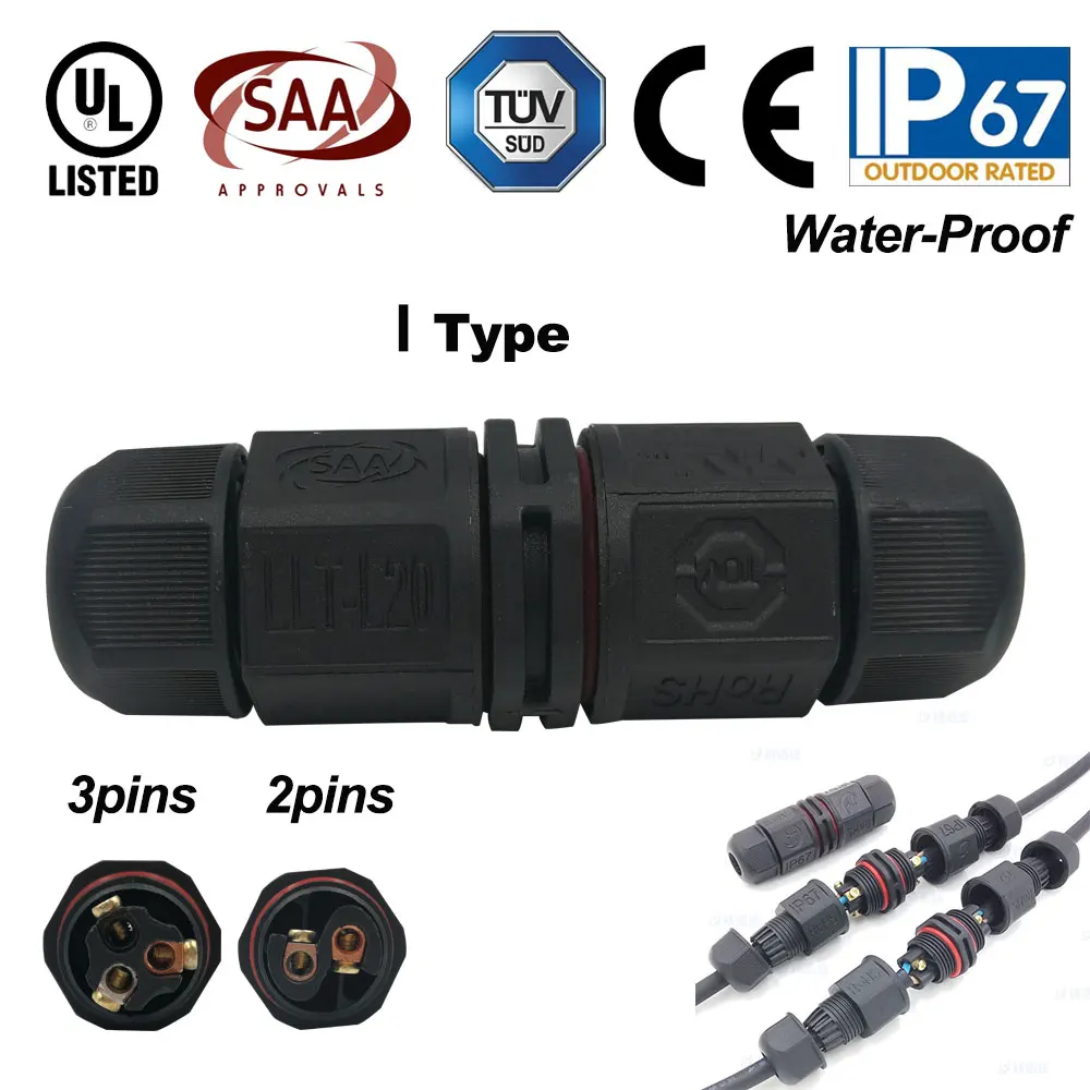 IP67 15A 2 3-контактный водонепроницаемый коннектор-адаптер, винт, блокирующий Кабельный соединитель, водонепроницаемый промышленный Электрический провод, соединитель