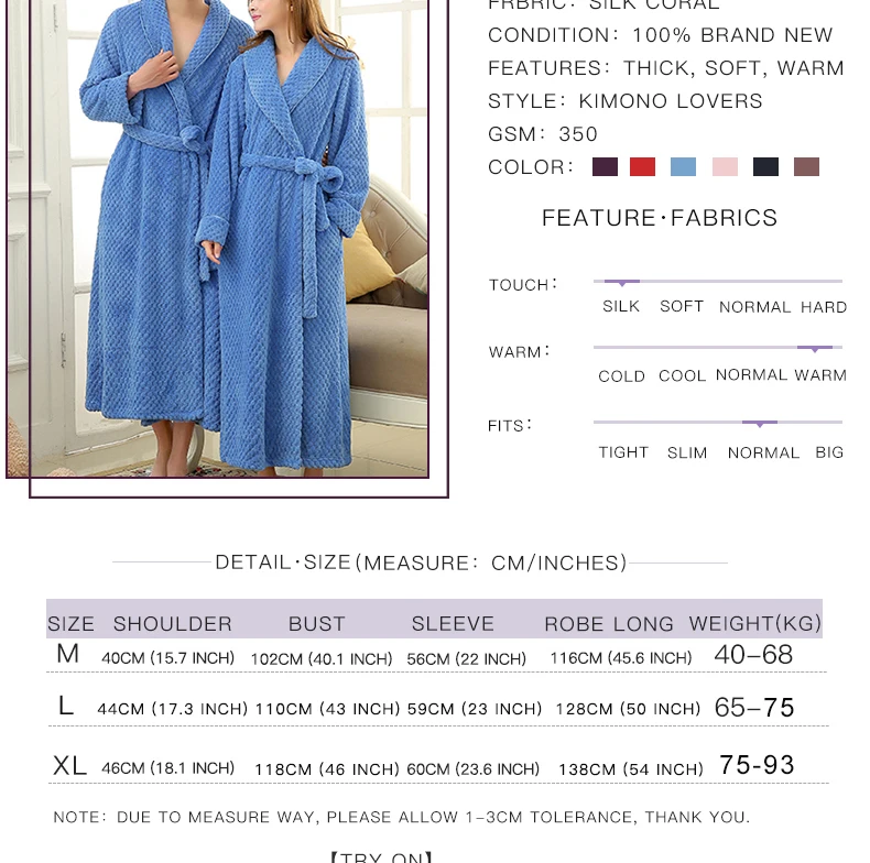 «Купил серый цвет очень легко для меня, ткань: толстый коралл Фланелевый на ощупь очень удобный, этот халат очень хорошего качества, у меня, мальчик, этот товар удобно надевать и снимать дома, мой рост 168 см, мой вес 73 кг, выберите размер L хорошо, толстый теплый, сильно впитывает воду, Доставка в течение 8 дней очень быстрая, лучший продукт, лучший продавец..."