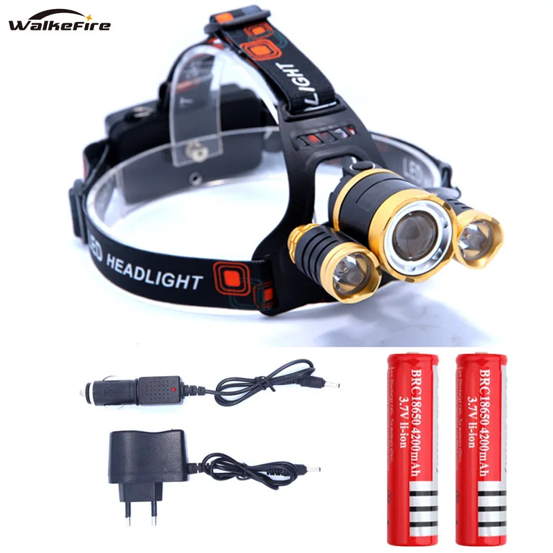 Светодиодный налобный фонарь T6 XM-L + 2Q5, 18650 лм, налобный фонарь, фонарь на голову с аккумулятором, автомобильное зарядное устройство переменного тока, лампа для рыбалки