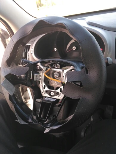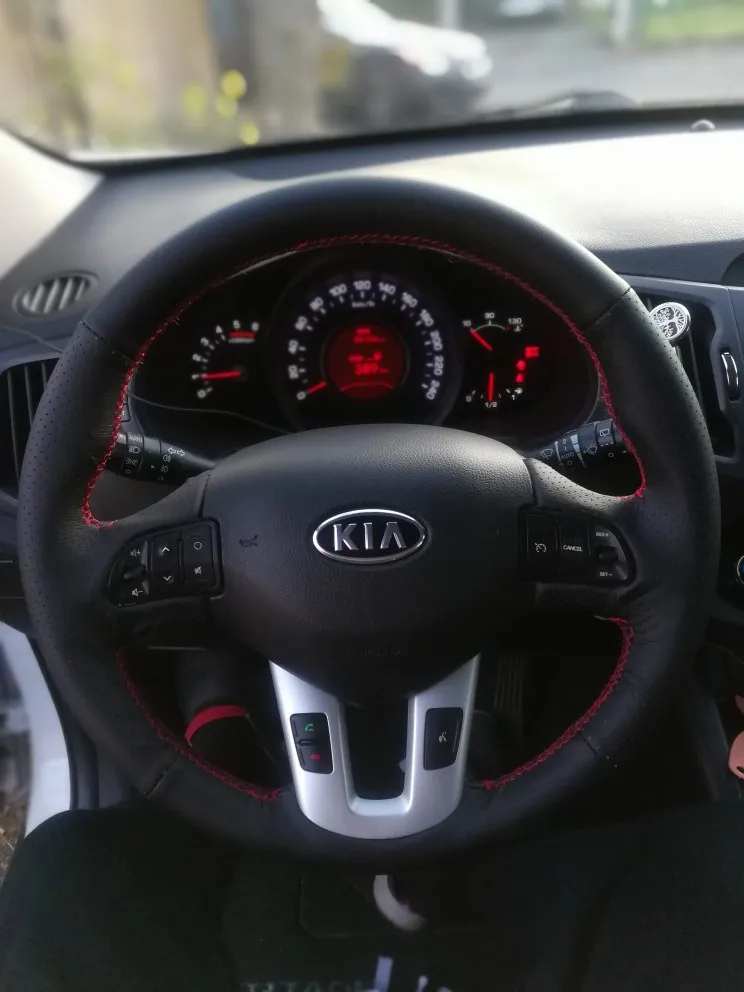 Все отлично. Спортейдж 3 2013г подошло хорошо. Но можно было бы сделать пошире места оплетки вокруг кнопок мультимедиа и круиза. Хотя и так все подошло, но впритык.