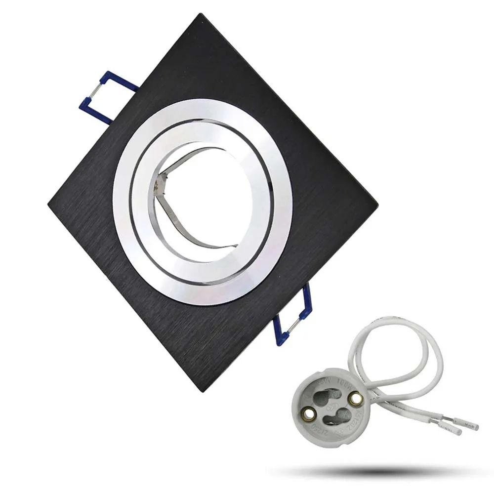 Встраиваемый потолочный Точечный светильник GU10 MR16 цоколь черный квадратный потолочный светильник 12 В 220 В для потолочного светильника с лампами 50 мм