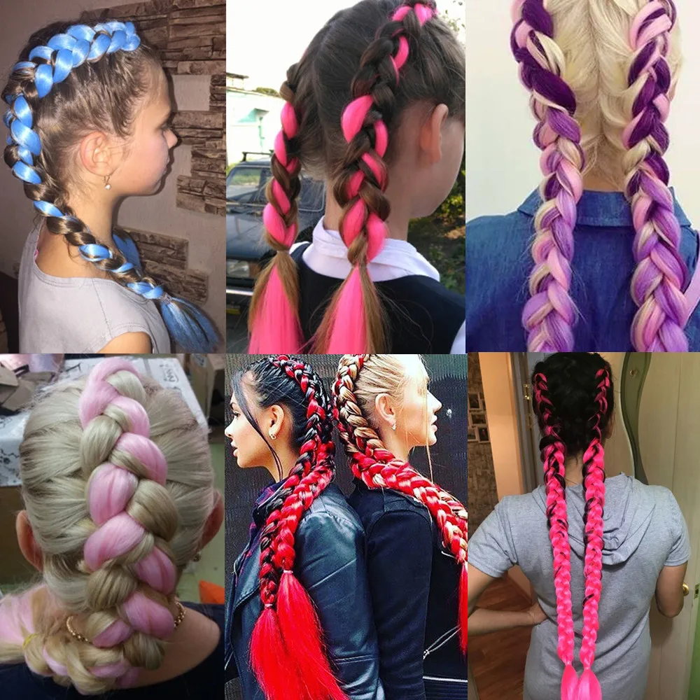 Полная Звезда 1 шт розовые фиолетовые светлые волосы для русских женщин высокая температура волокна красочные прямые крючком косы синтетические волосы