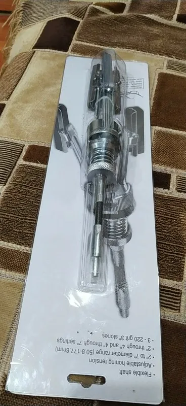 Пришло примерно за неделю. У инструмента имеется гибкий вал и пружина натяга. Взял самый маленький из имеющихся. Камушки длиной всего 30мм, что очень мало. Двухтактные цилиндры обрабатывать не подойдёт. Проваливаются в продувочные окна. Надо брать длинее. Закажу камни длиной 100мм, напишу результат работы.
