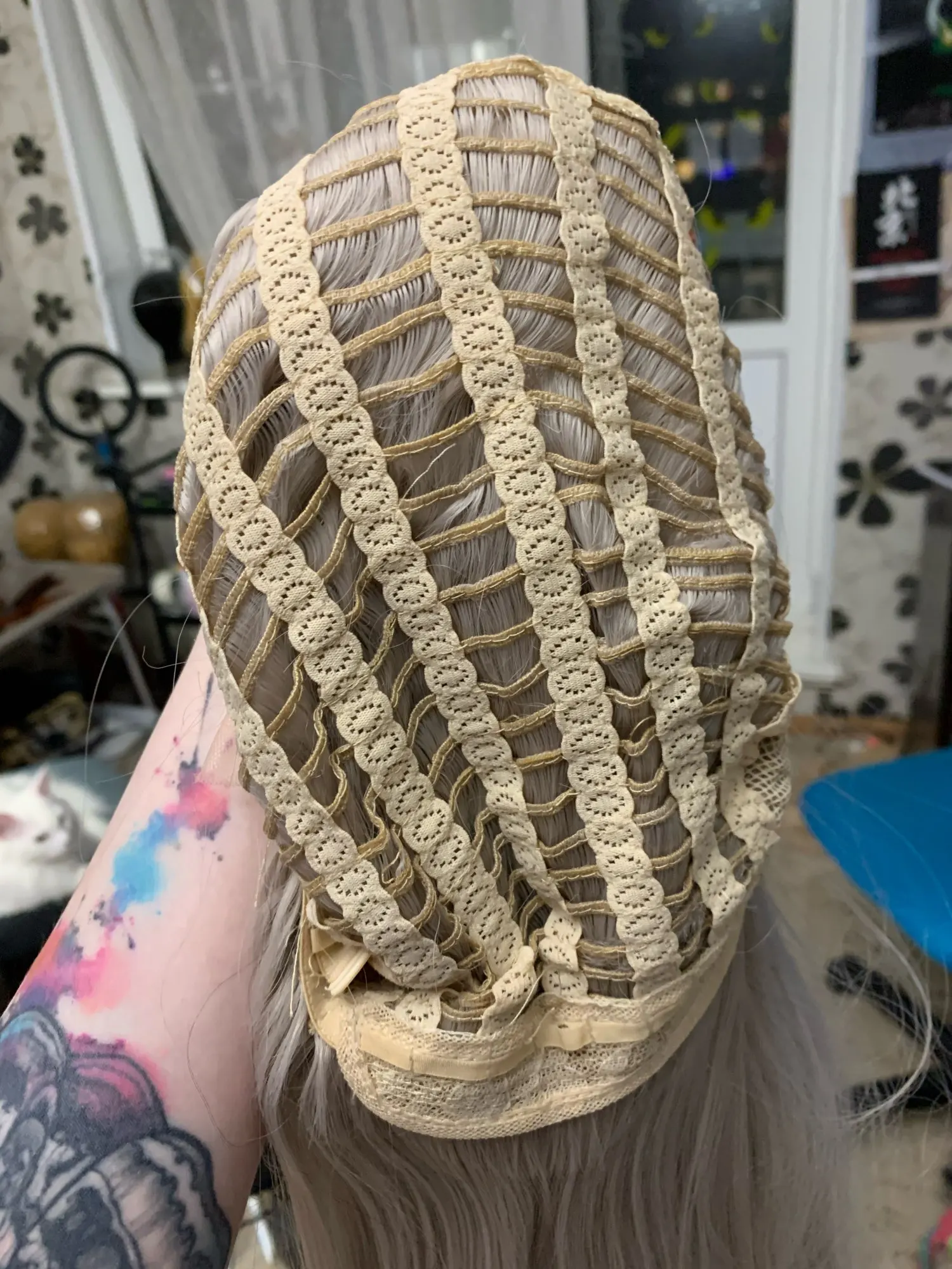Парик Sylvia из натуральных волос, белый блонд, волнистые волосы, ф...