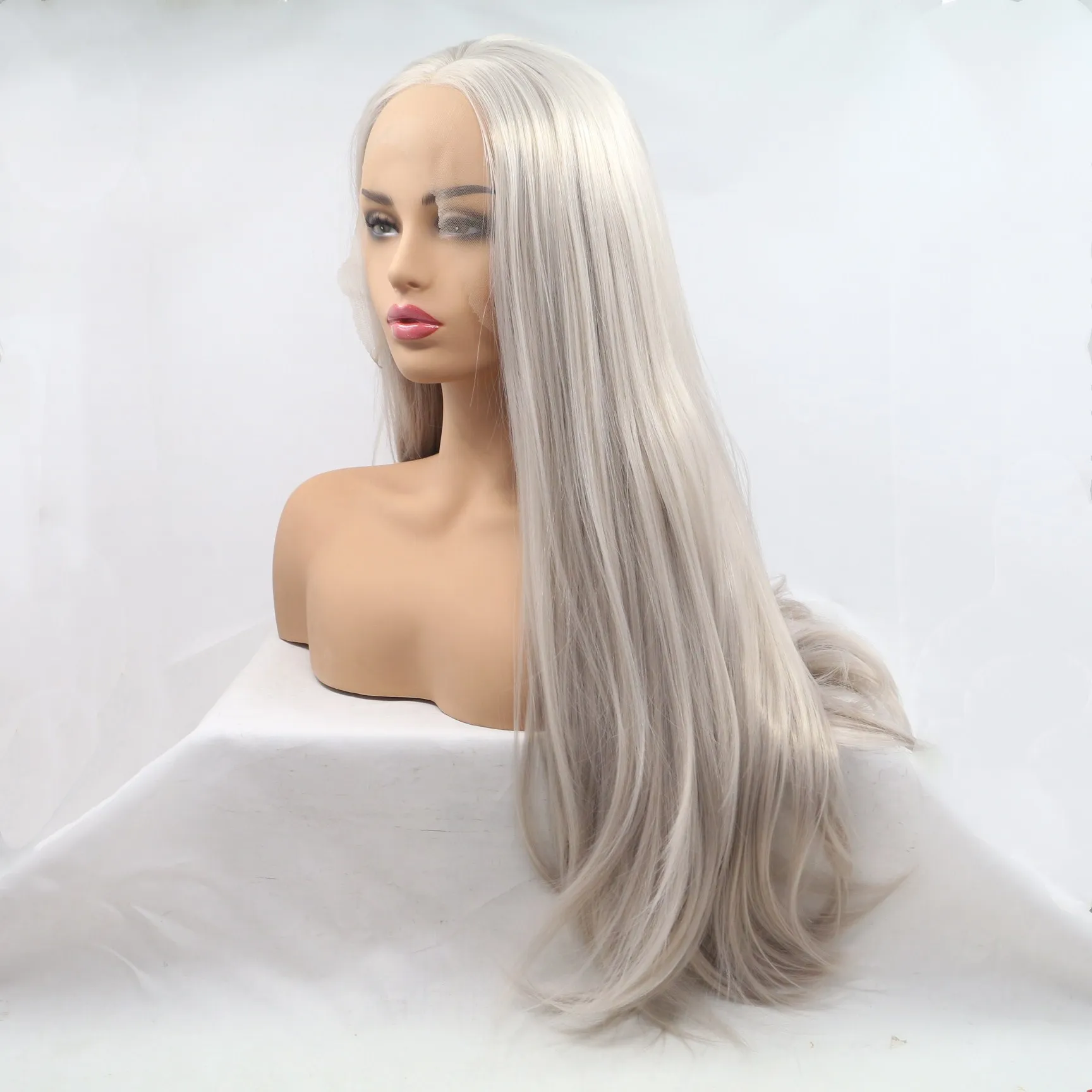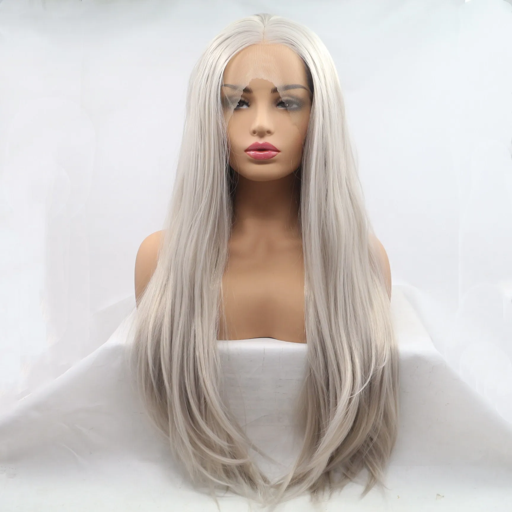 Sylviaдлинные шелковистые прямые волосы, белый парик из синтетическ...