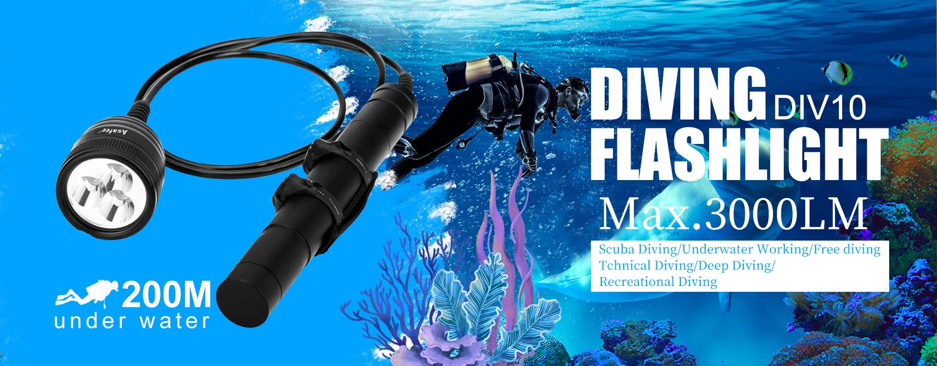 Налобный фсветильник Asafee для дайвинга, фонарь для дайвинга лм, XML T6, светодиодный водонепроницаемый, для подводной съемки, 50 м,