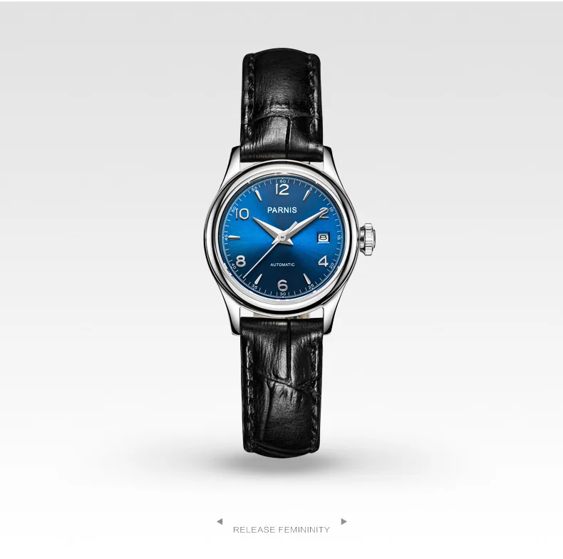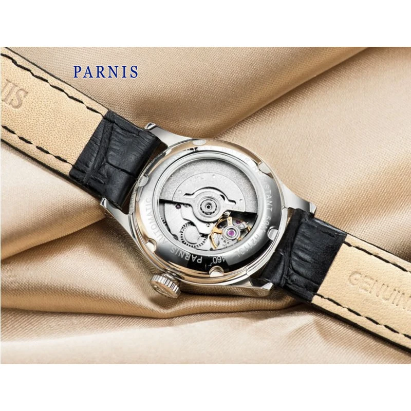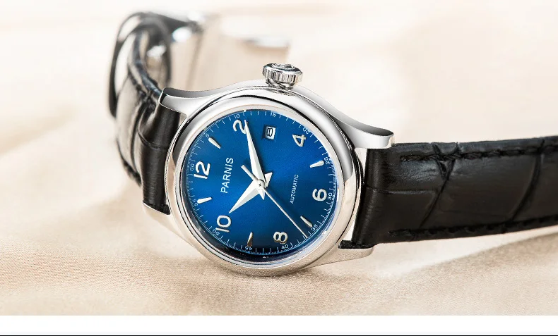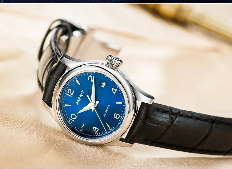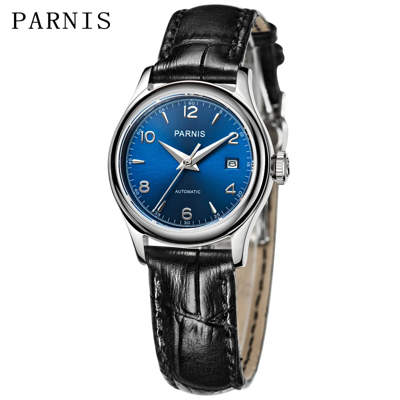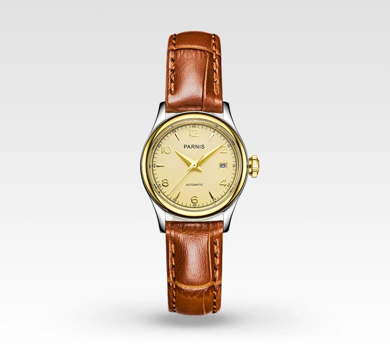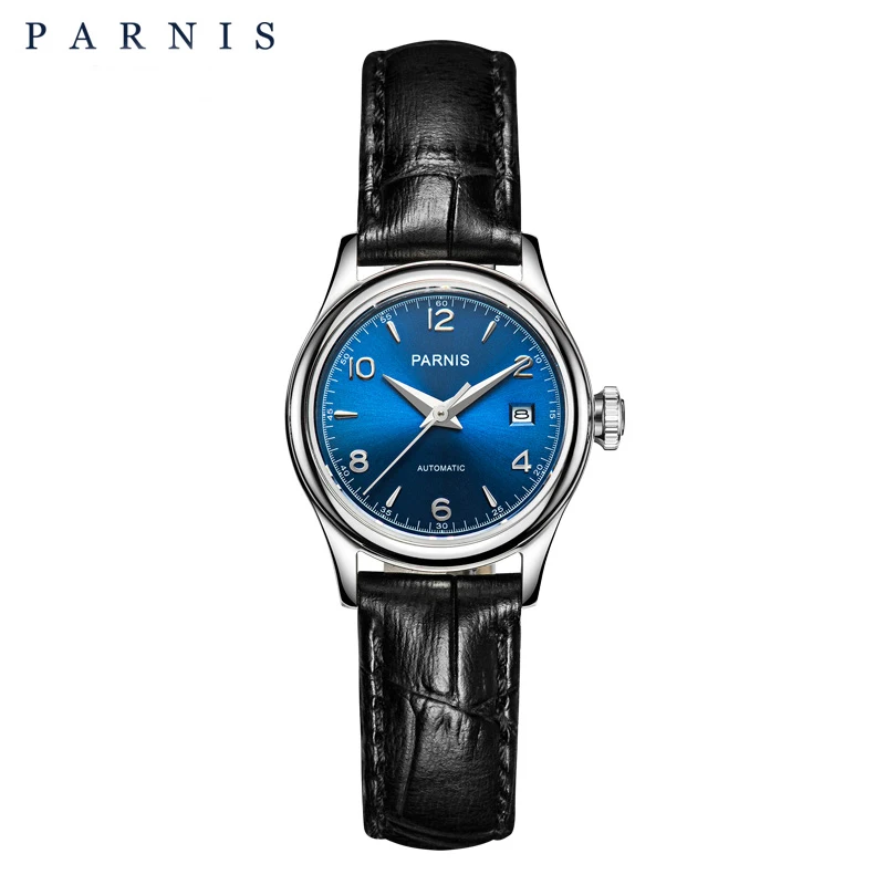 Часы наручные Parnis женские механические, модные повседневные автоматические, с сапфировым стеклом и кожаным ремешком, с календарем, 26 мм