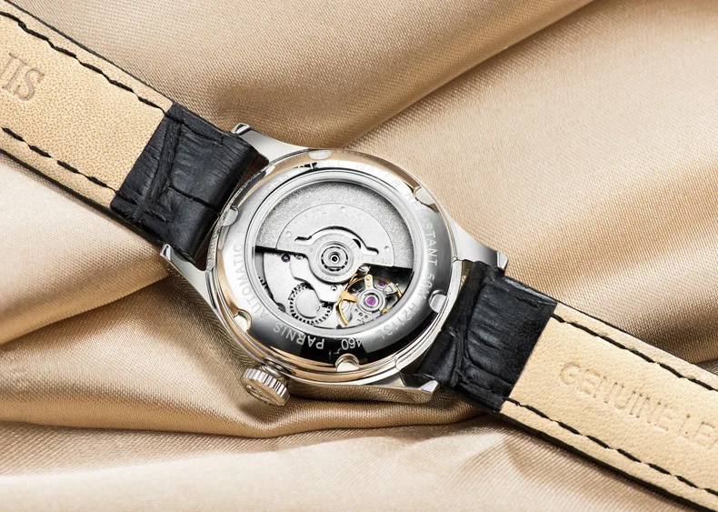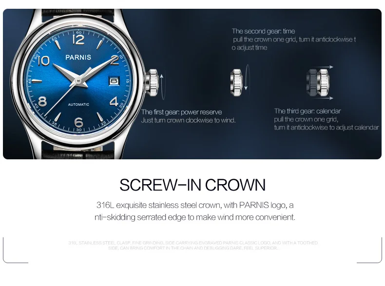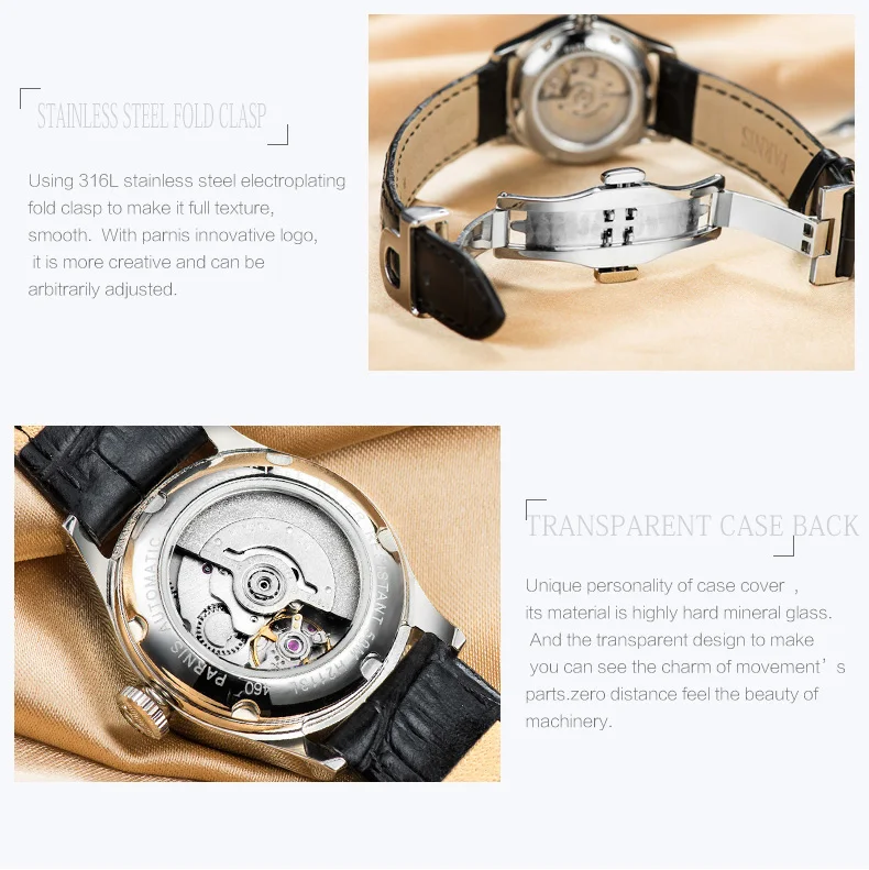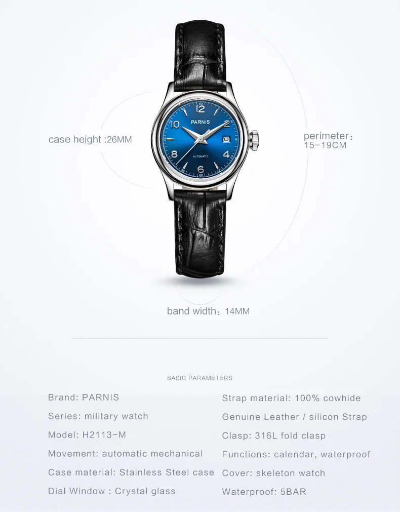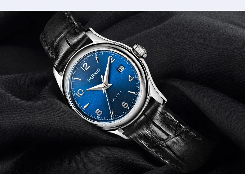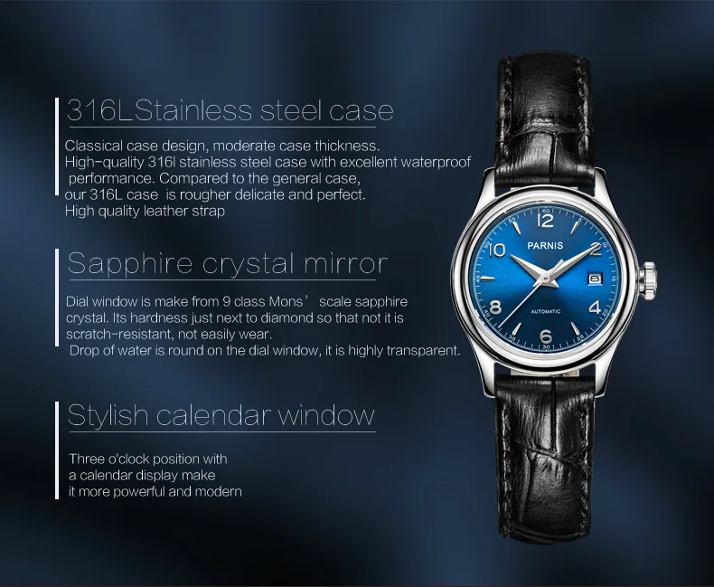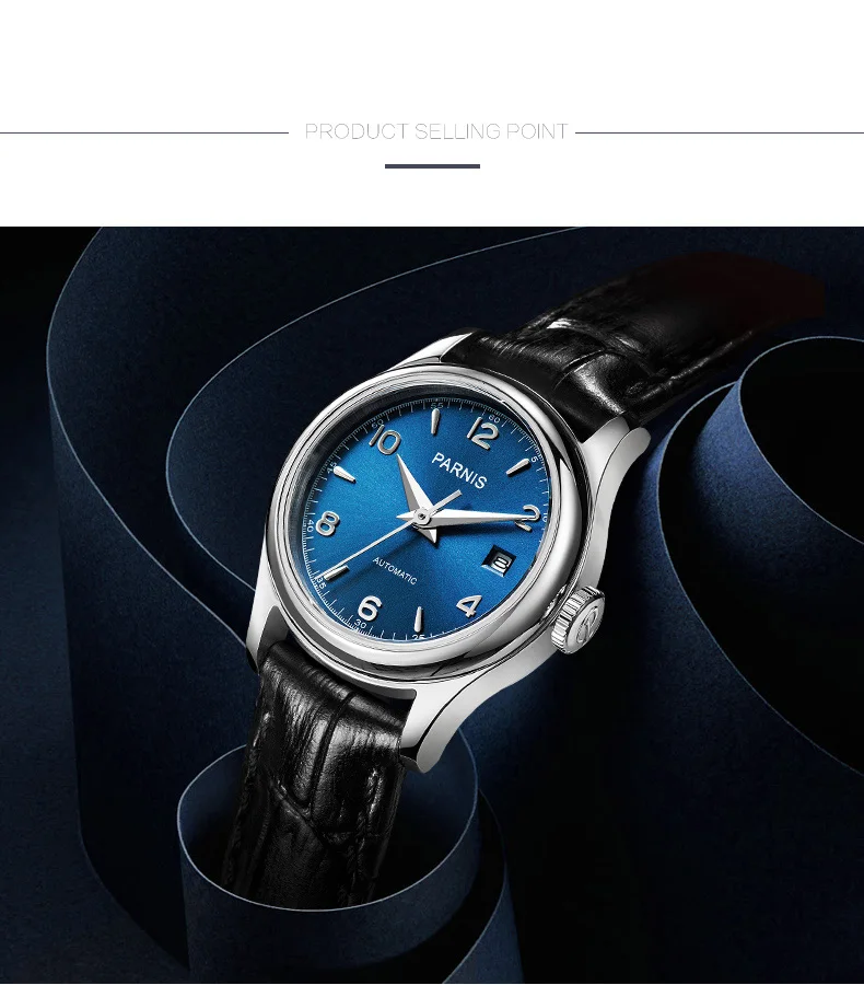 Часы наручные Parnis женские механические, модные повседневные автоматические, с сапфировым стеклом и кожаным ремешком, с календарем, 26 мм