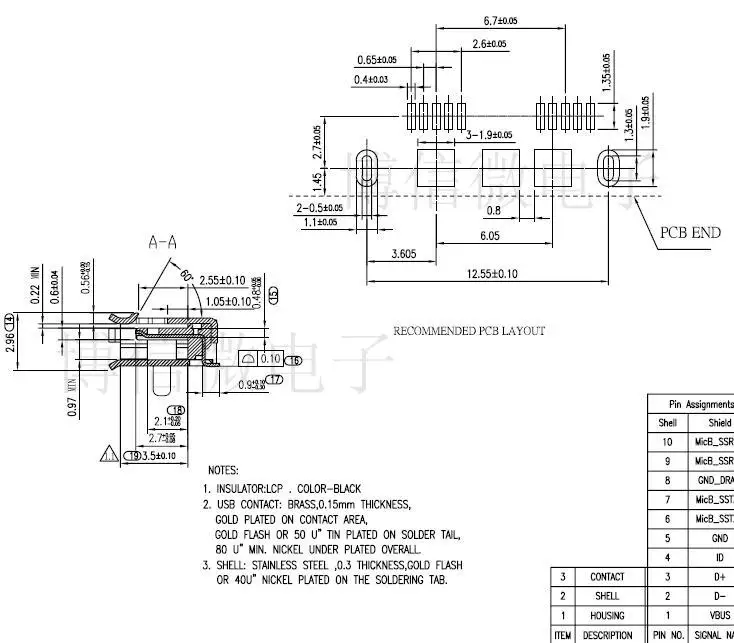 Гнездовой разъем DIP Micro USB 3,0 B, 10pin, 50 шт.