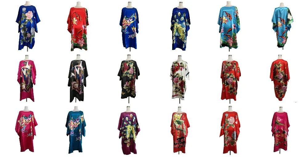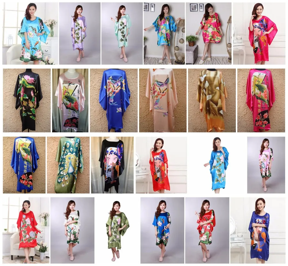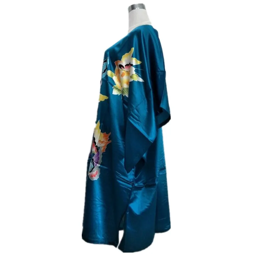 Женское шелковое платье из вискозы, голубое кимоно с цветочным принтом, один размер
