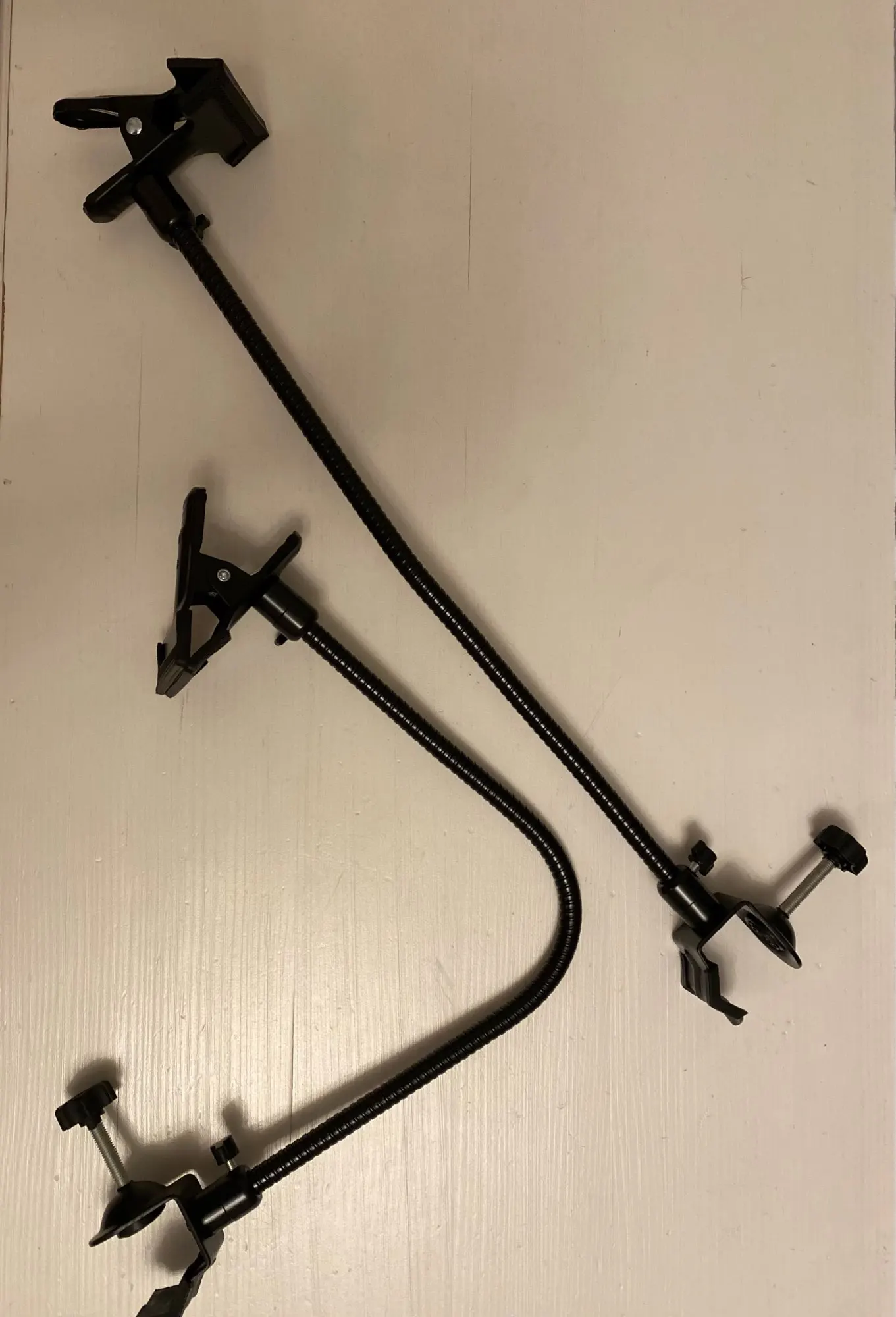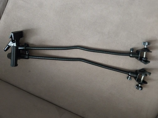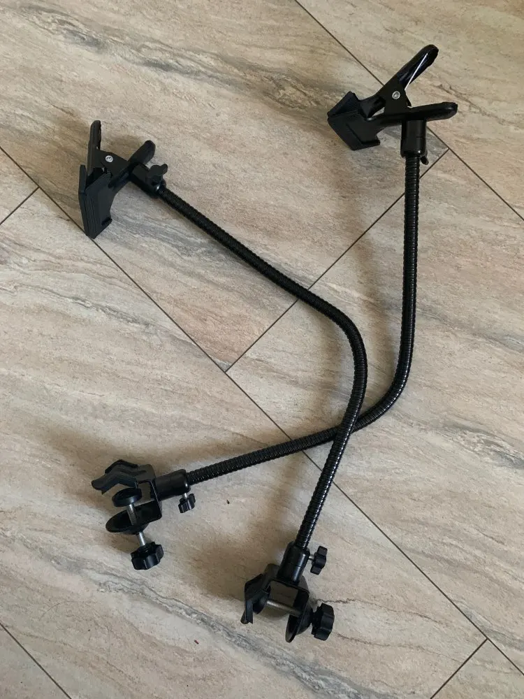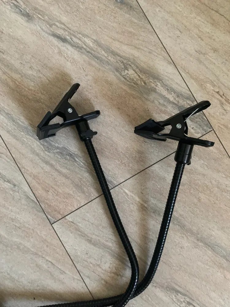 Очень жёсткие гнущиеся трубки - очевидный плюс этому товару. Металл качественный, прищепки мощные, винты удобные. Фоны, флаги, лёгкие товары держать будут идеально! Что было понятно по жёсткости, то скажу так: камеру 5d не выдержат, прогнутся под весом, а прищепки очень крепко жмут и если вставить в них телефон, то могут раздавить или повредить, так что это не для таких целей.